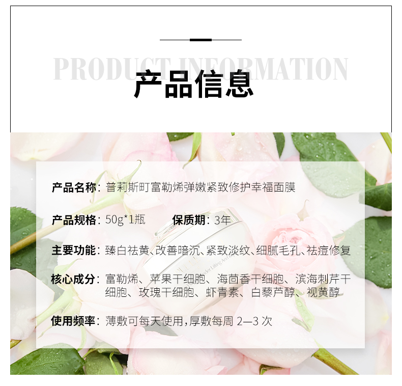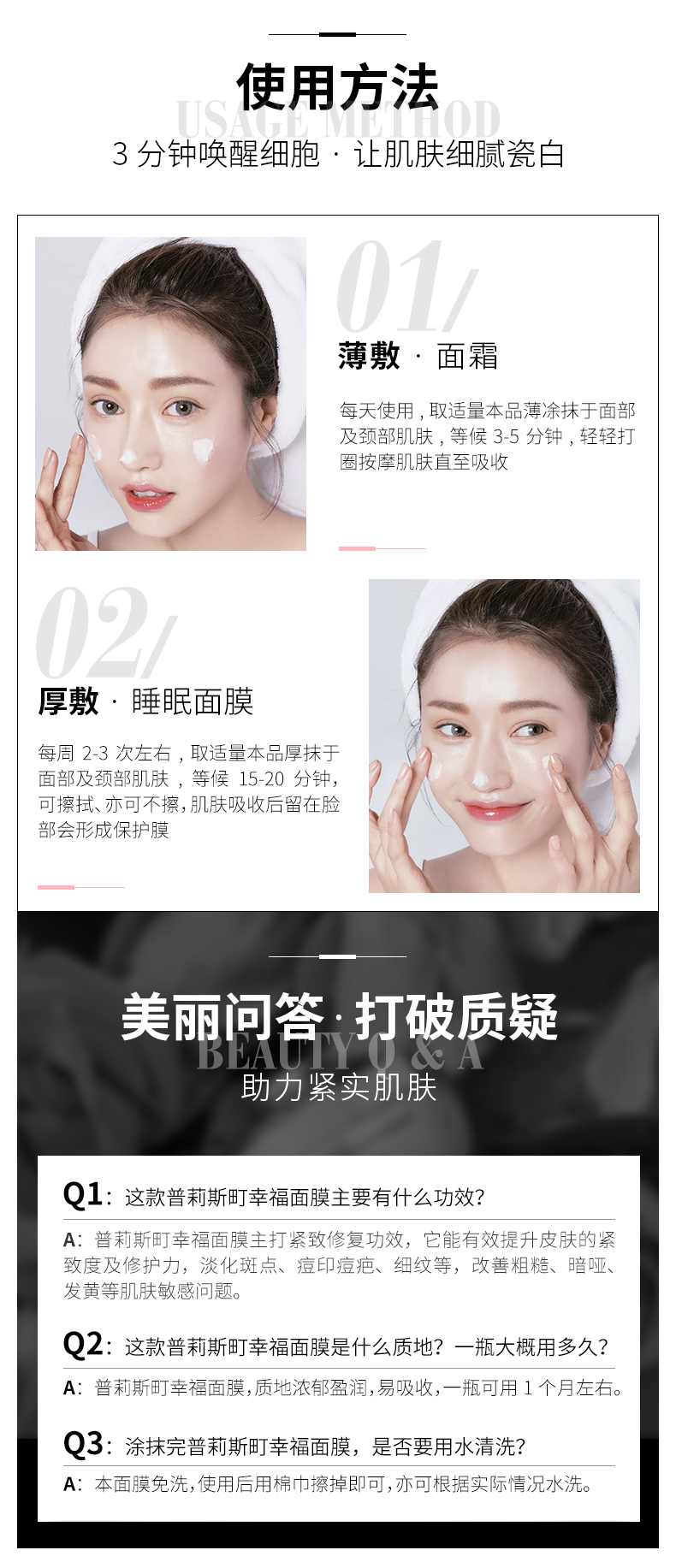 商品名称:普莉斯町富勒烯弹嫩紧致修护幸福面膜50g*2瓶 拿铁色