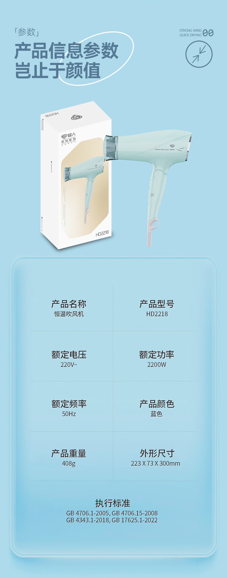商品名称:SID超人电吹风机HD2218(单位:个) 图片色