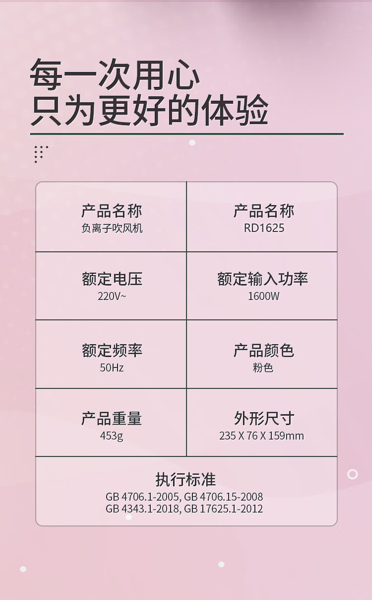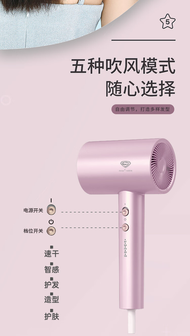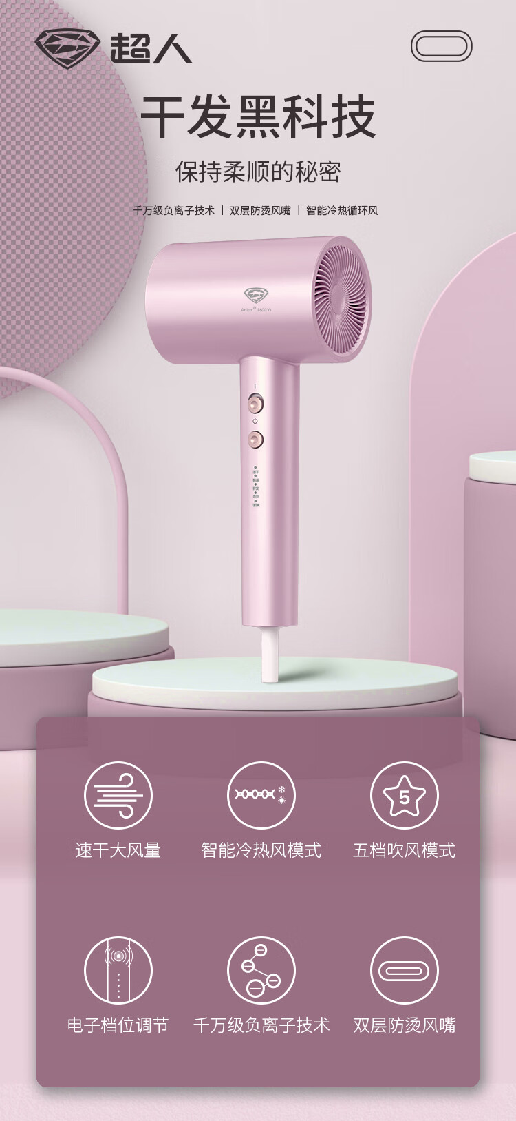 商品名称:SID超人电吹风机RD1625(单位:个) 粉色