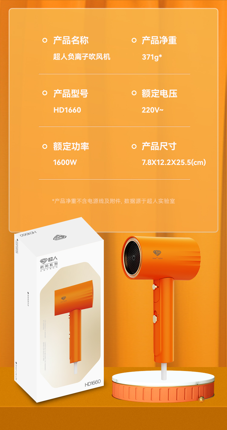 商品名称:SID超人电吹风机HD1660(单位:个) 橙色