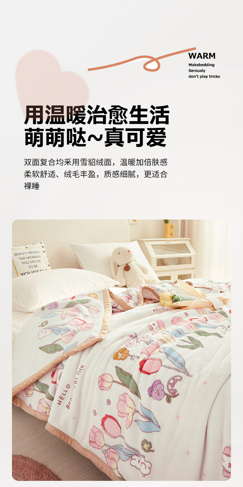 商品名称:帛享家纺 雪貂绒毯子毛毯盖毯BXQTK-32030单位(条)花丛小兔 150*200CM