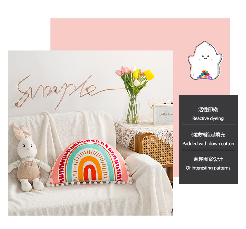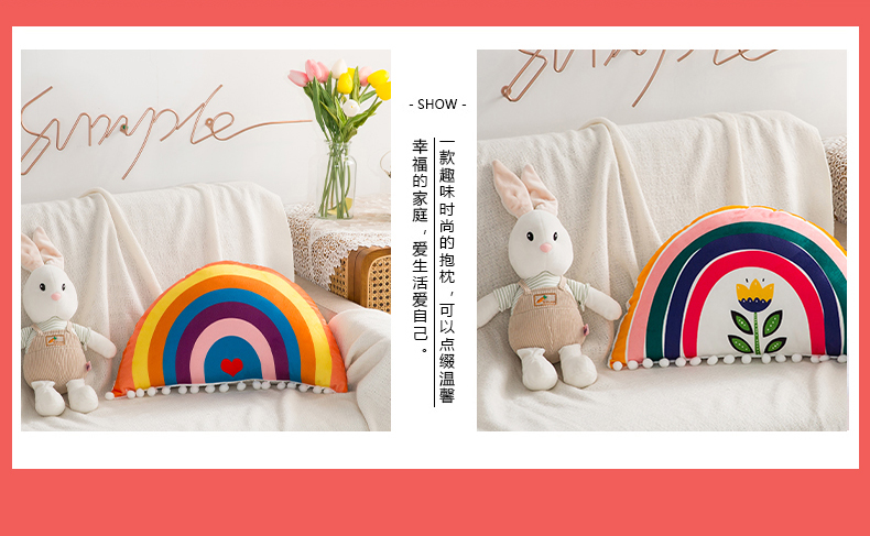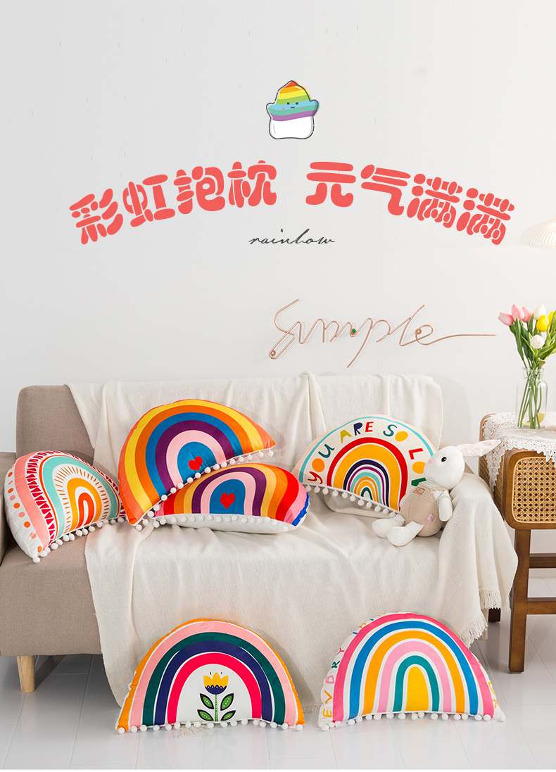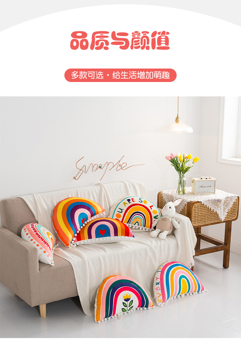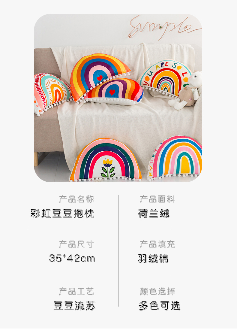商品名称:帛享家纺 彩虹抱枕靠垫卡通BXQZX-30991单位(个)35*42CM 彩虹(随机发,可备注花色)