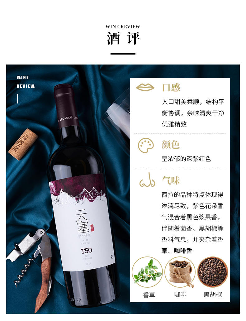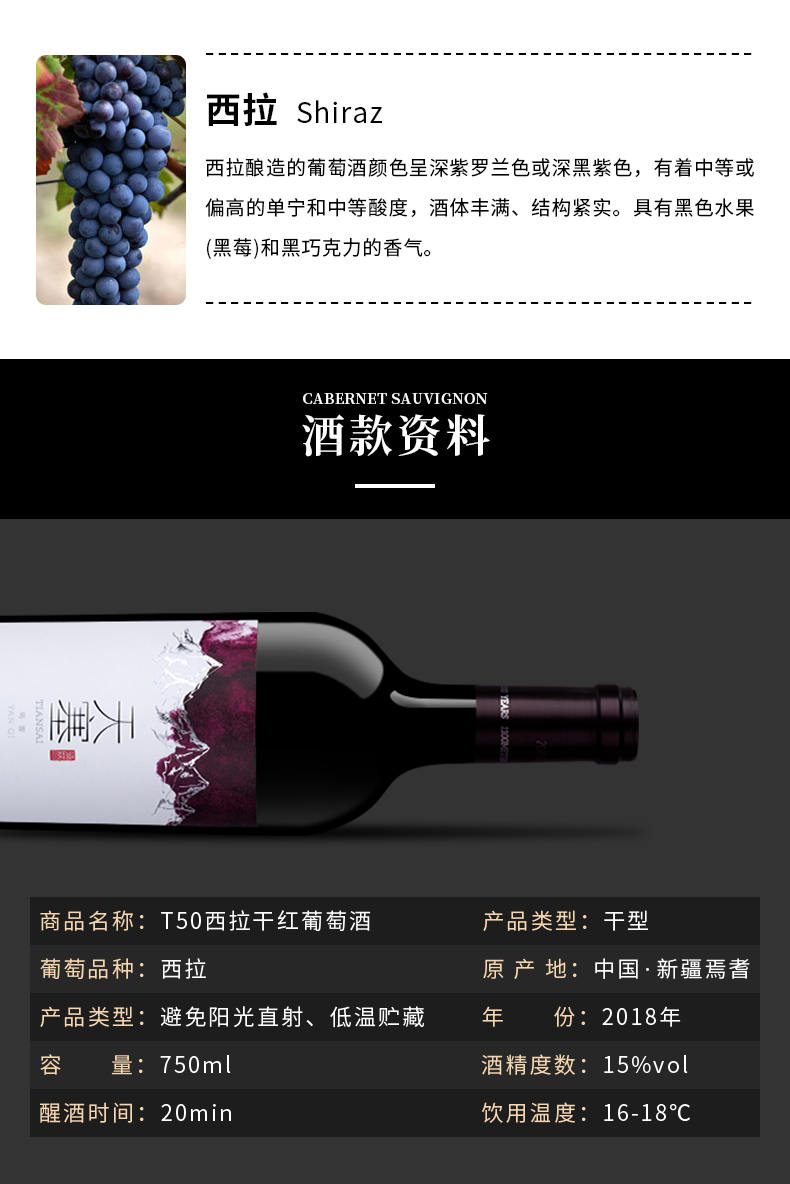 商品名称:天塞酒庄 T50西拉干红葡萄酒 750ML(单位:瓶) 紫色