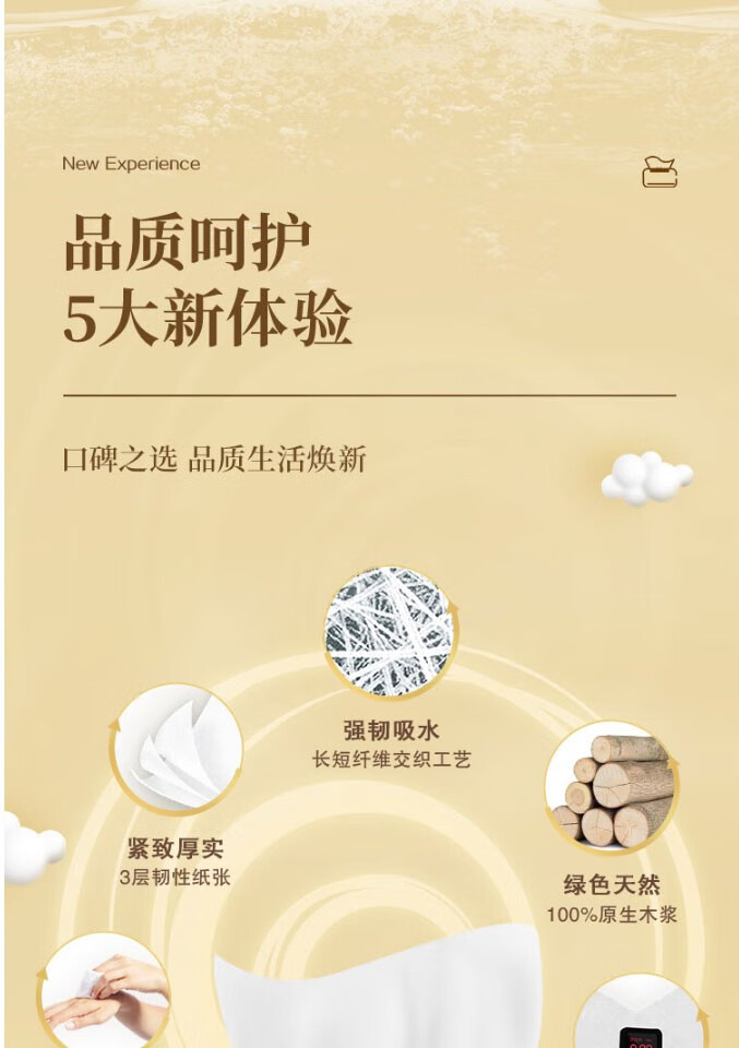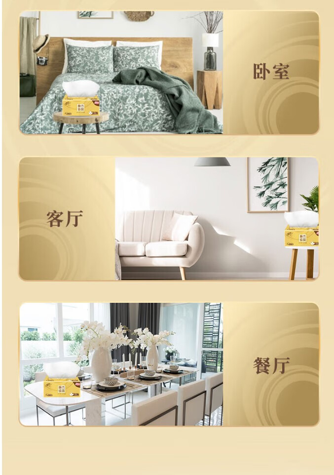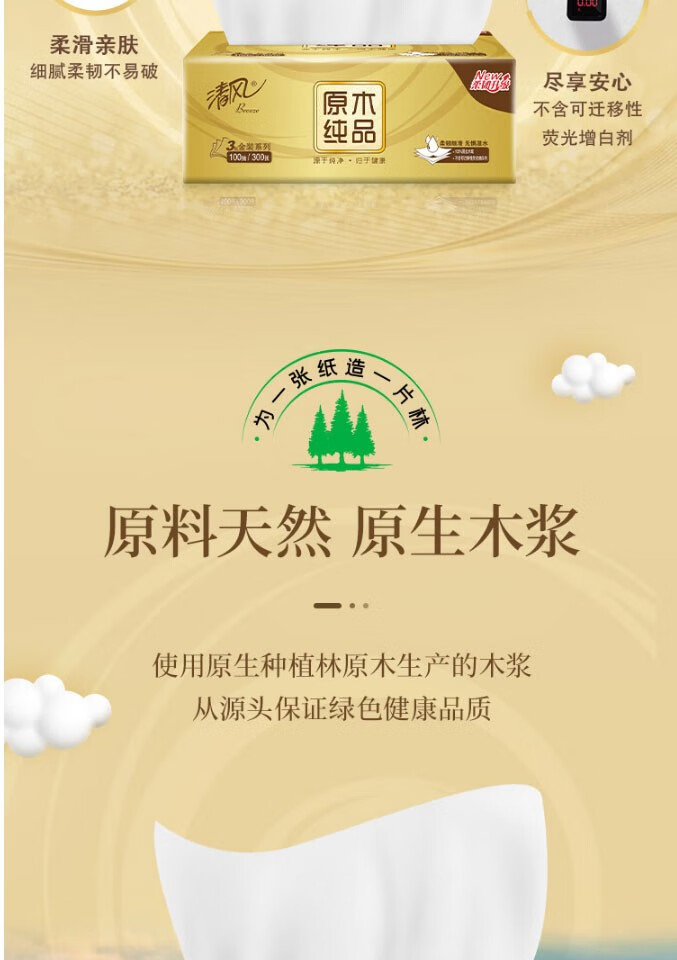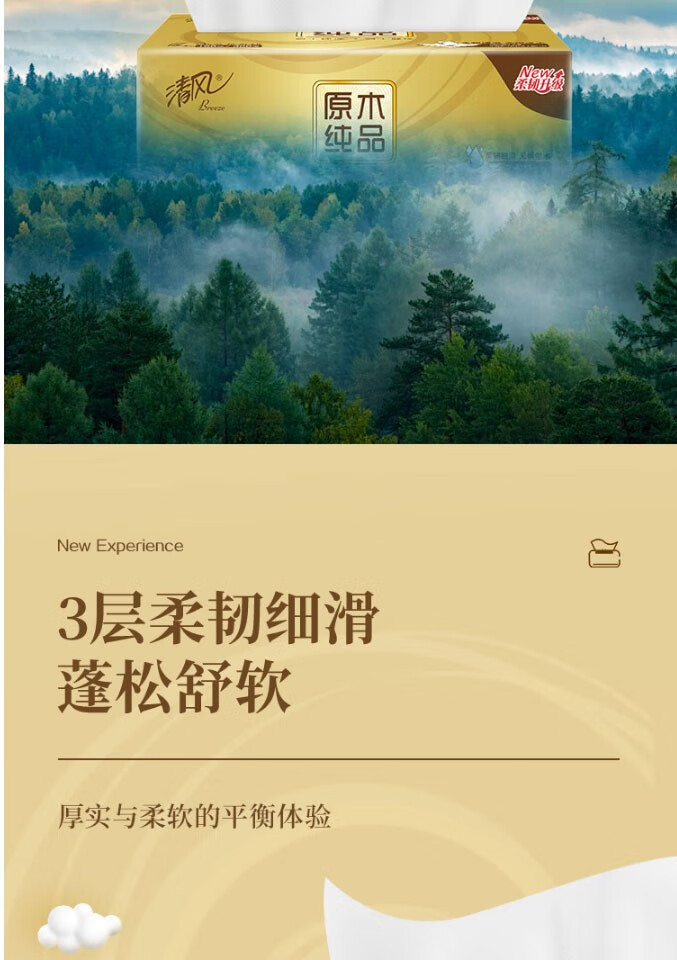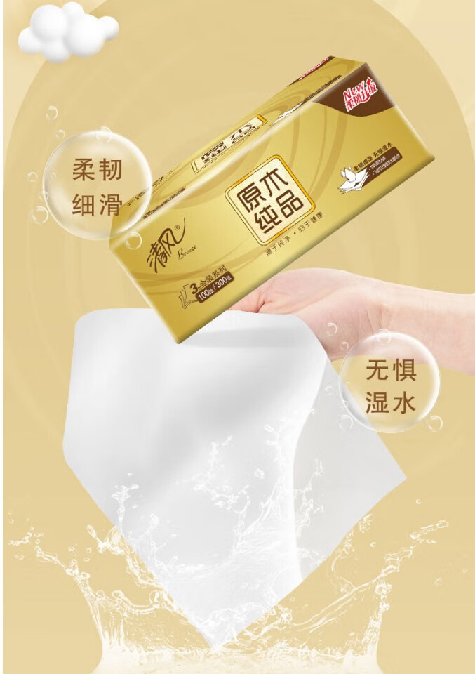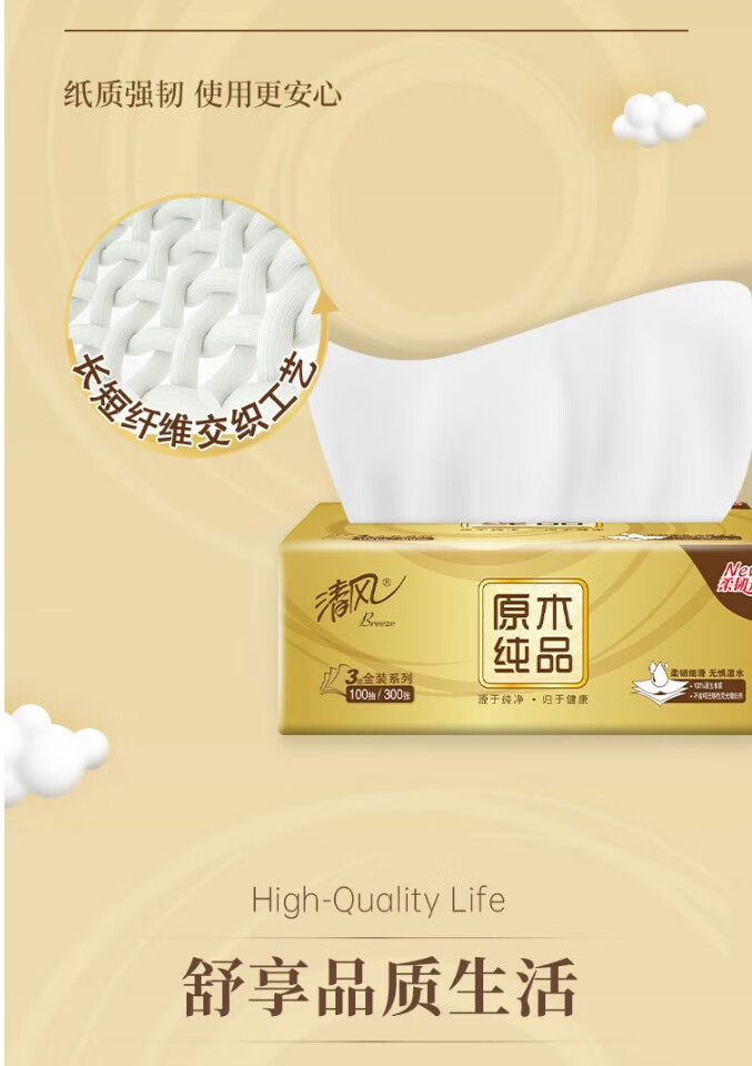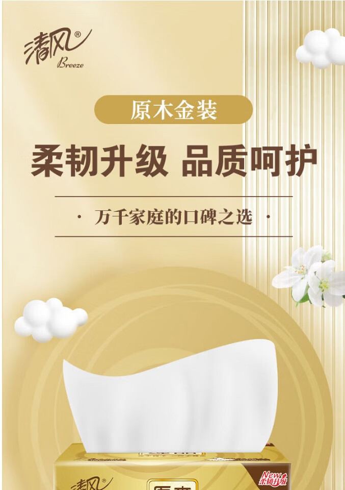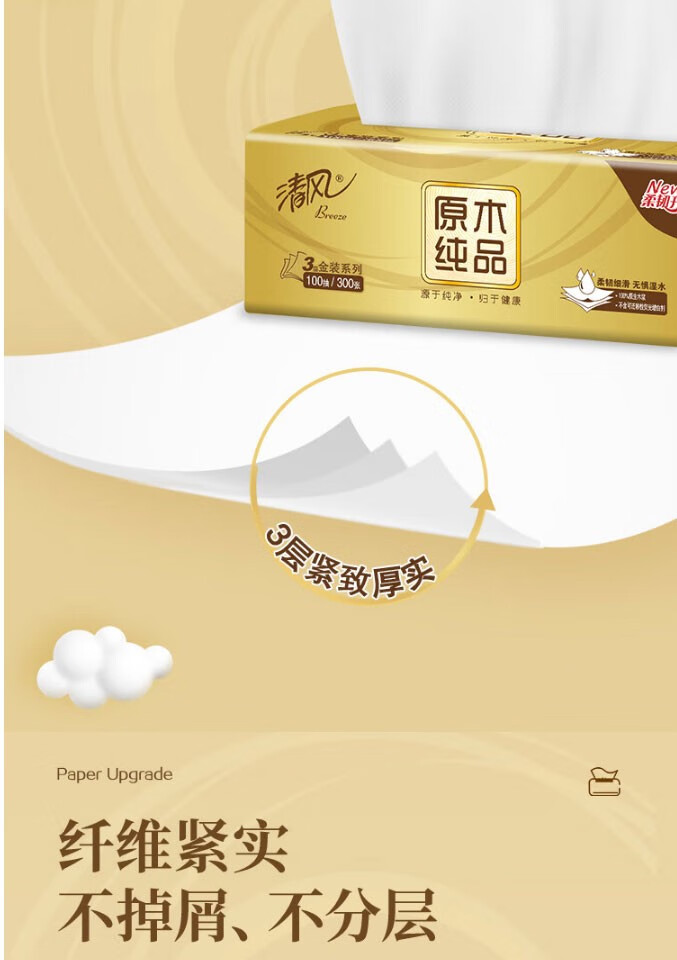 商品名称:清风金装抽纸XS码3层100抽4包 体验装AR42GZZ-04E