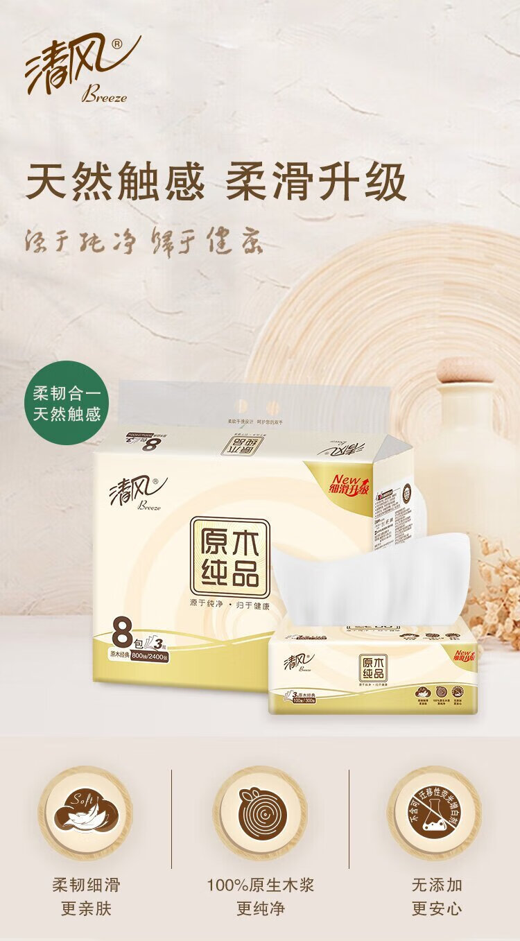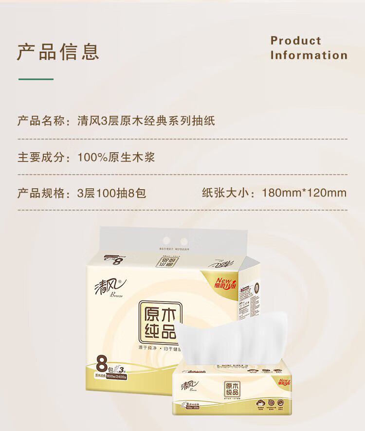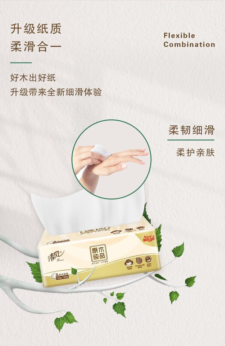 商品名称:清风纯品抽纸100抽16包AR80SZC-16E-T(单位:提)