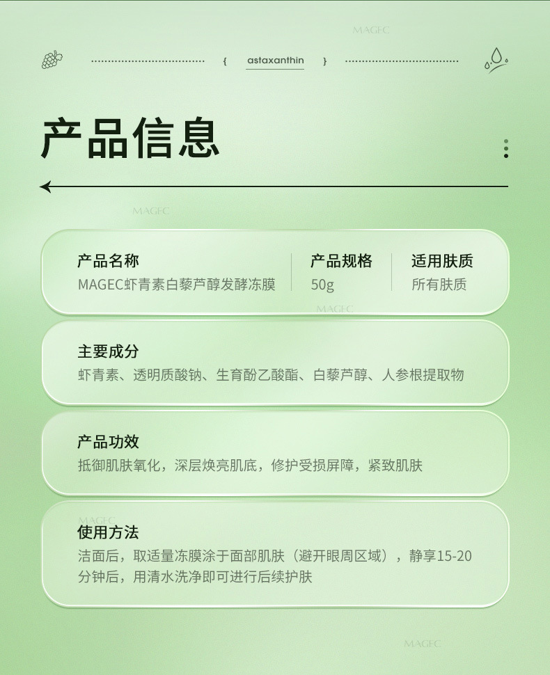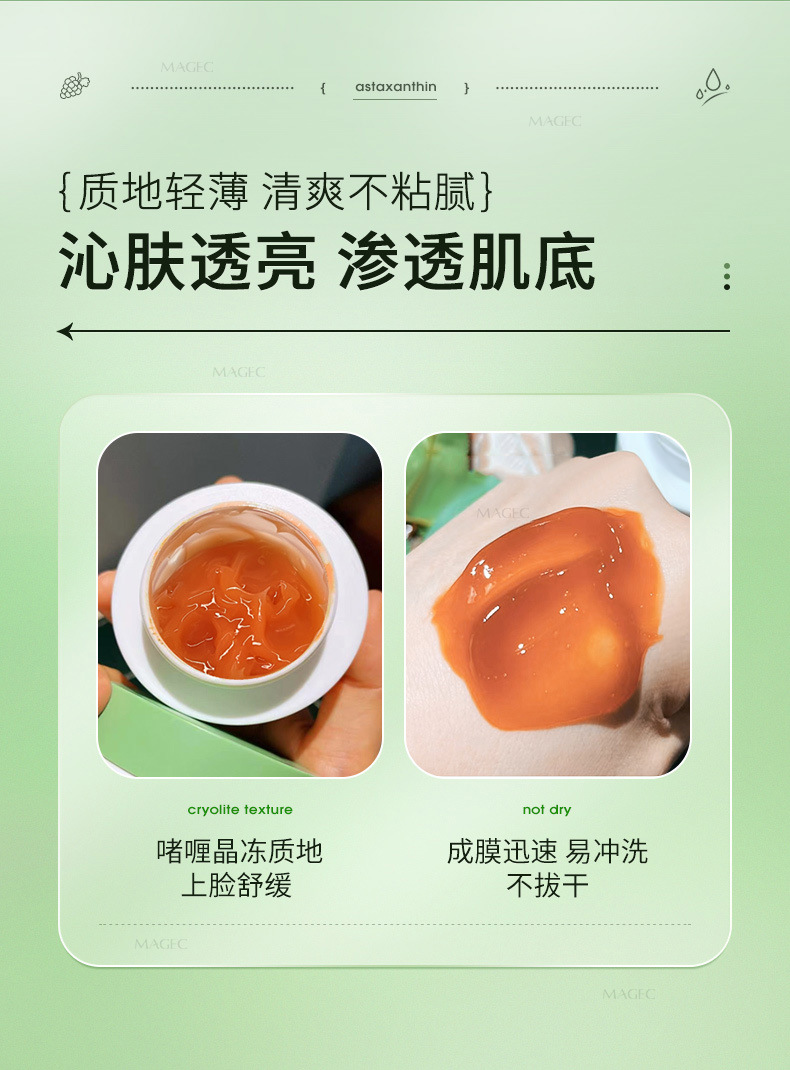 商品名称:MAGEC芊茗草 虾青素泥膜双抗涂抹面膜补水保湿美白去黄气暗沉50g MQ127 规格