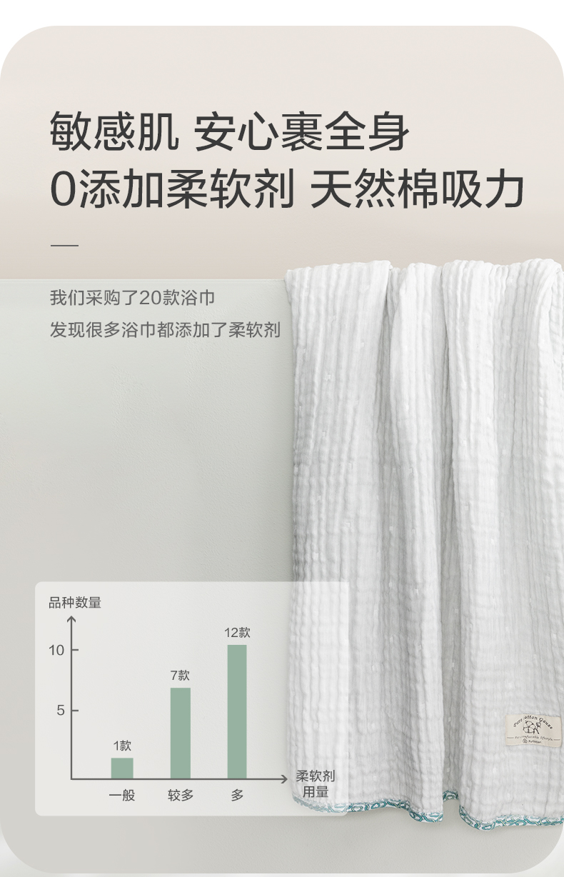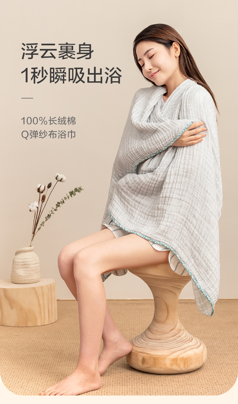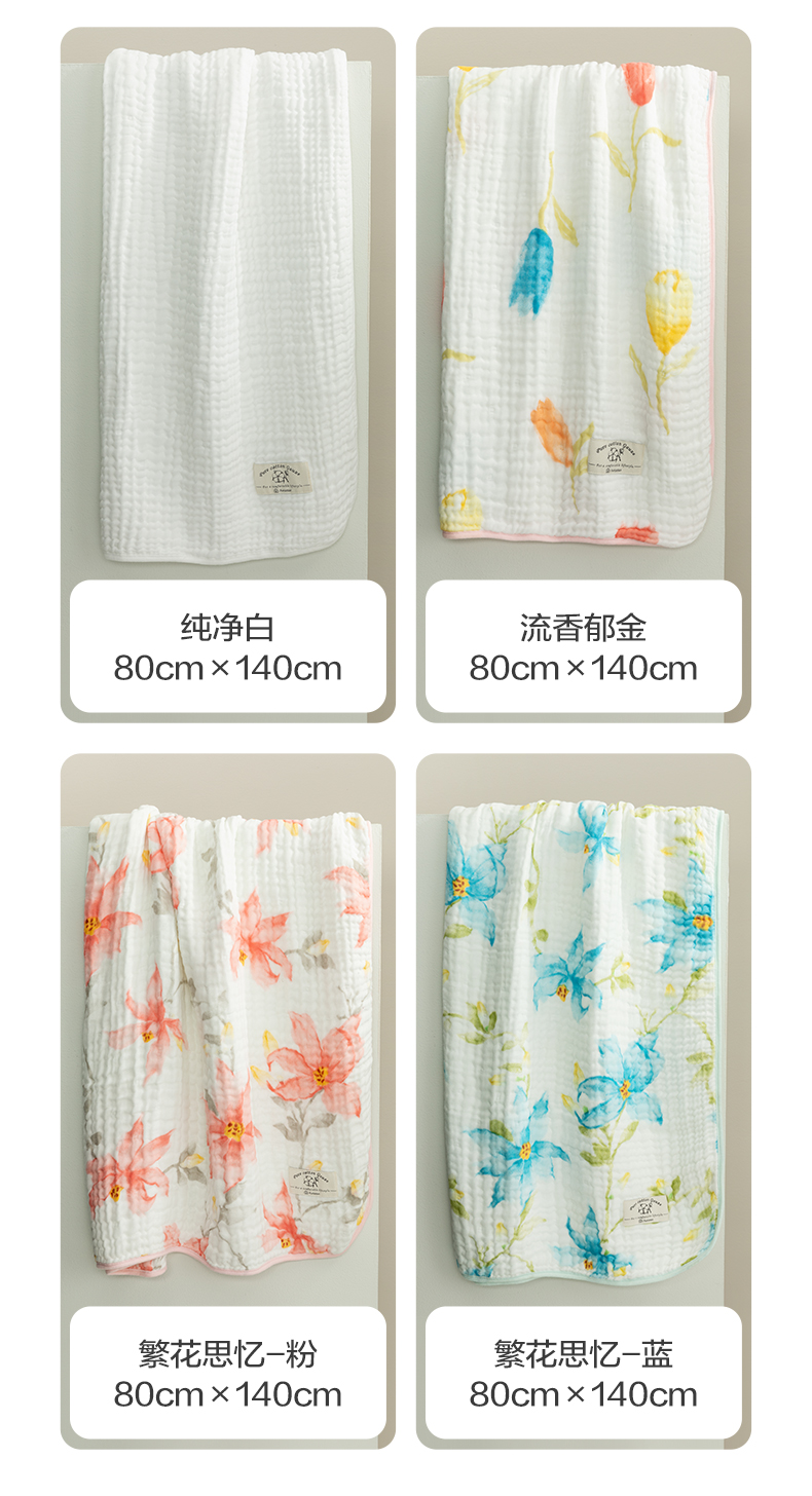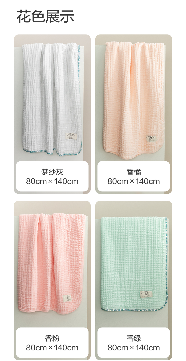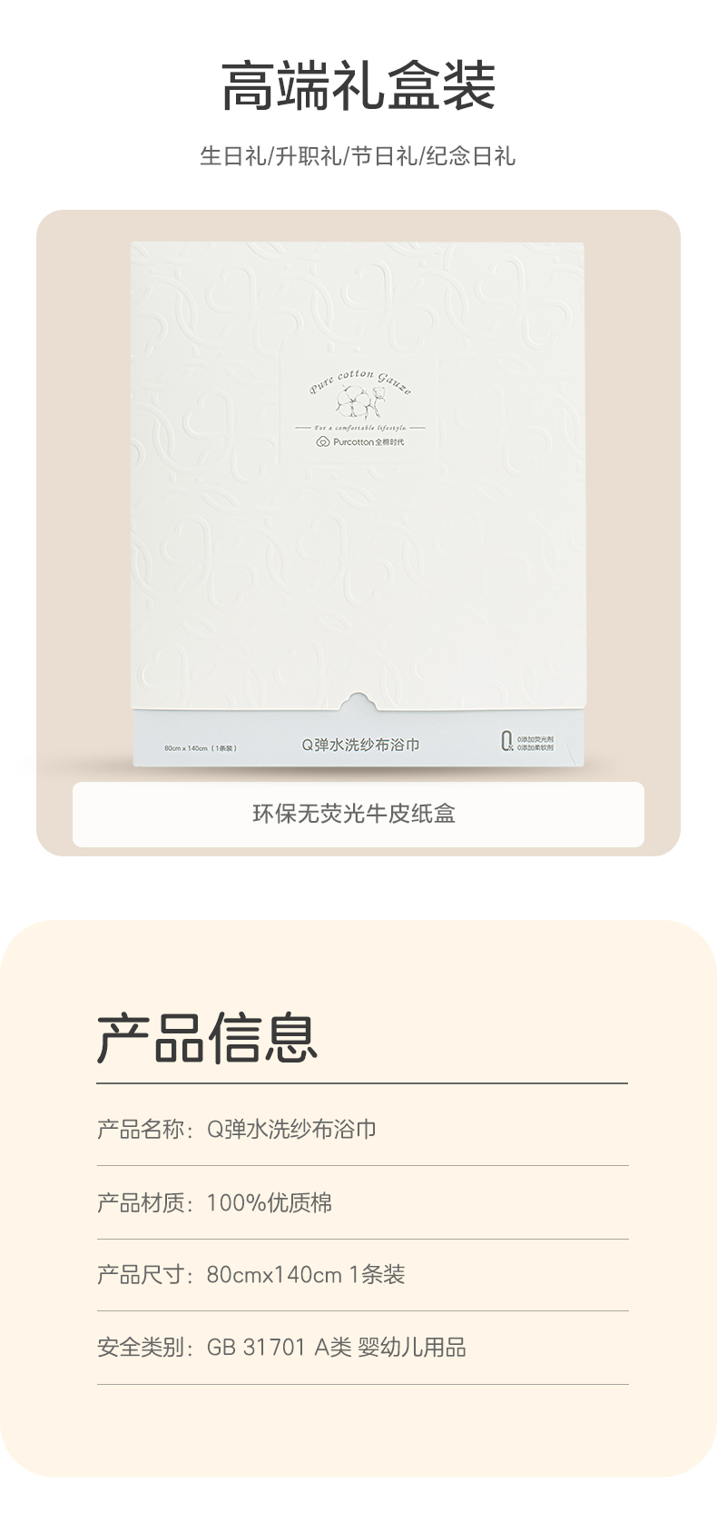商品名称:全棉时代Q弹水洗六层纱布浴巾 高端礼盒装 80cm×140cm 香粉 1条 香粉