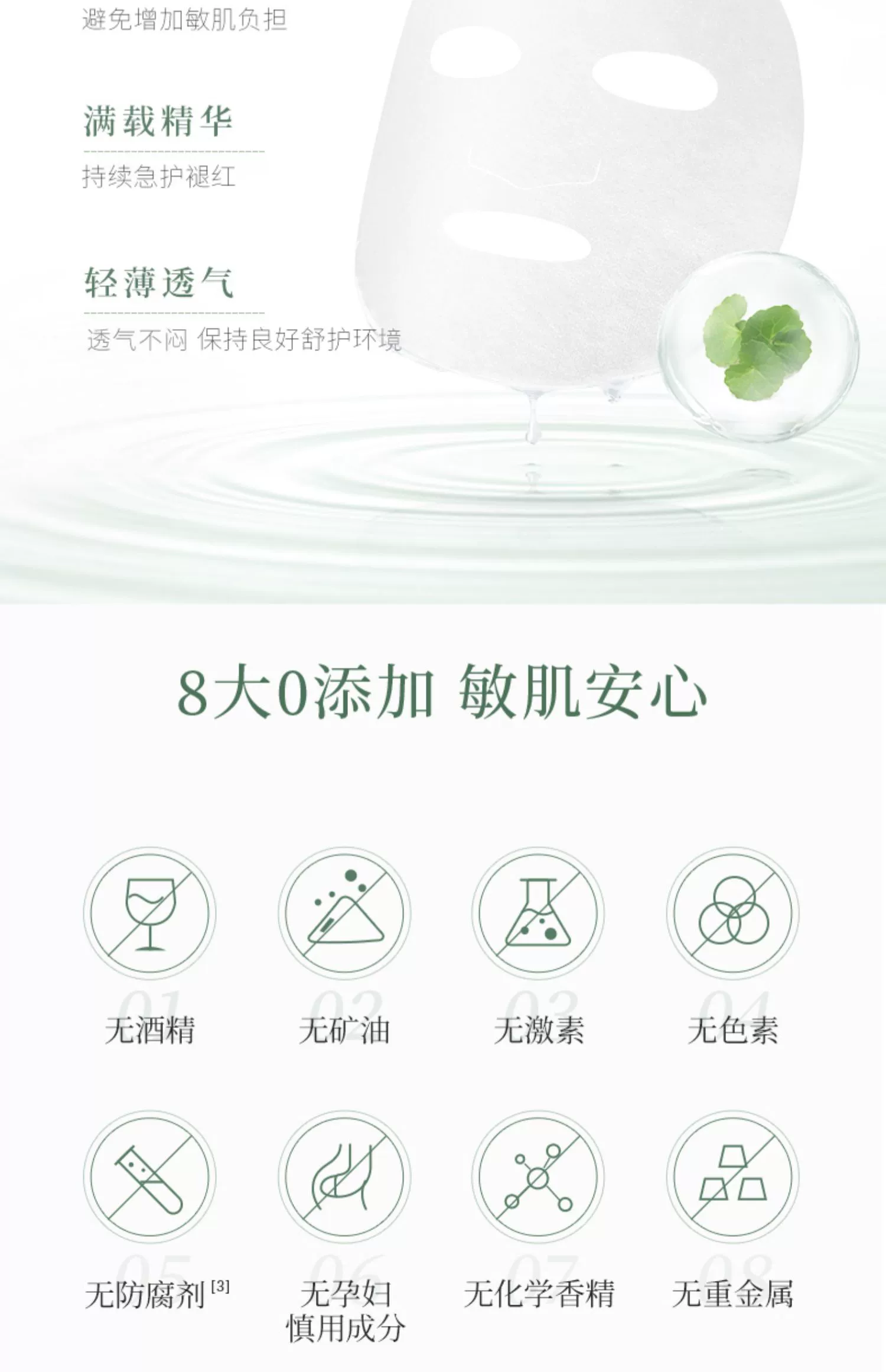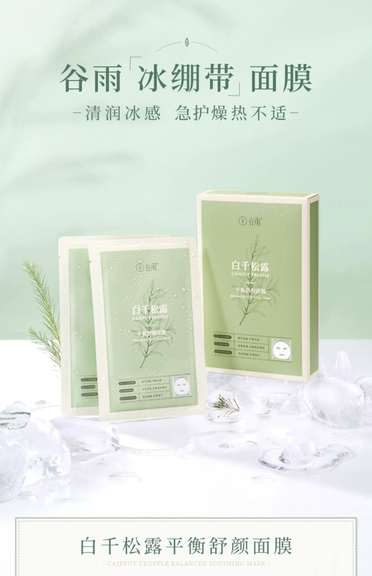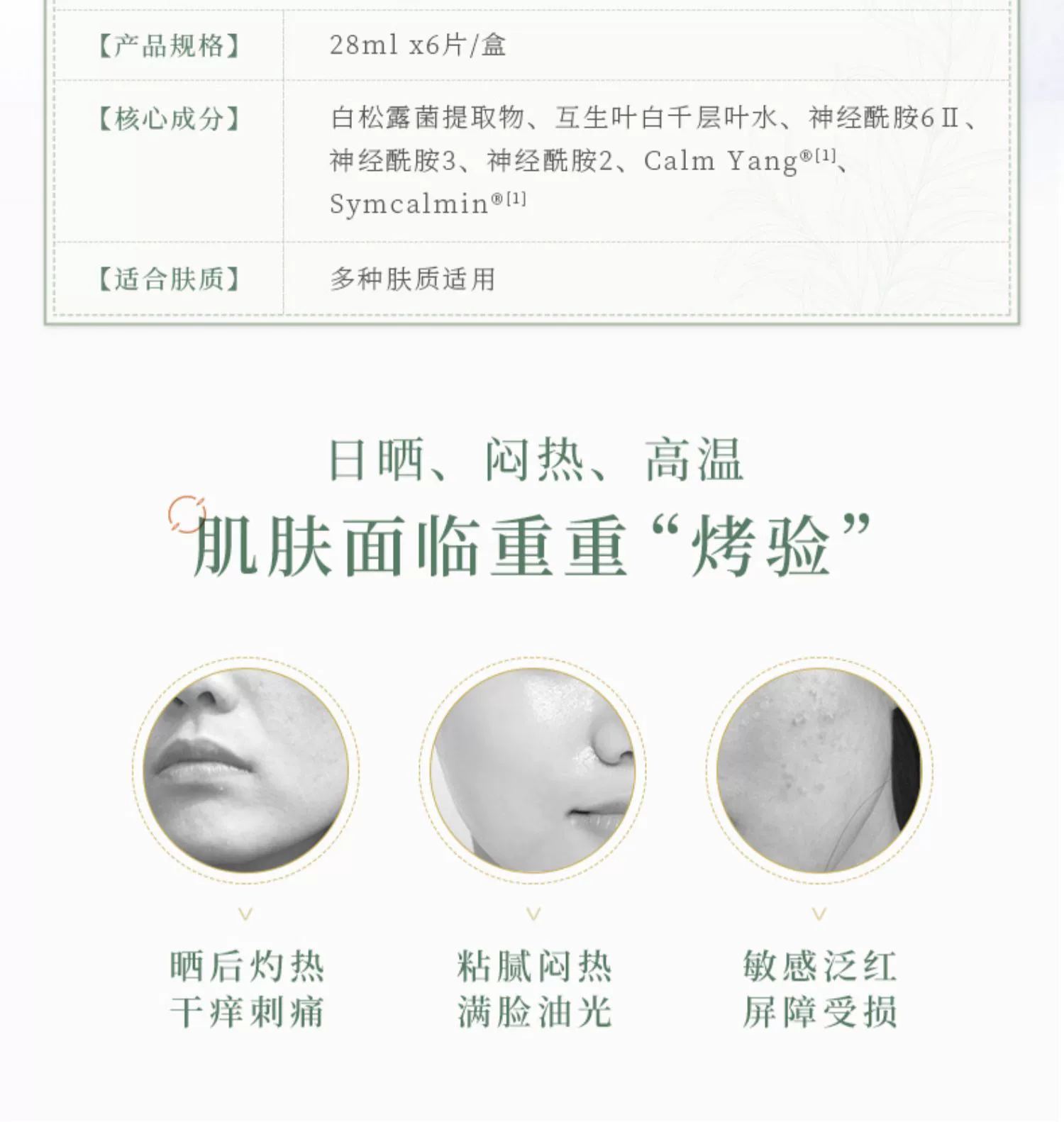 商品名称:谷雨白千松露平衡舒颜面膜28ml *6片 绿色