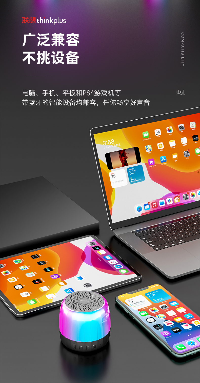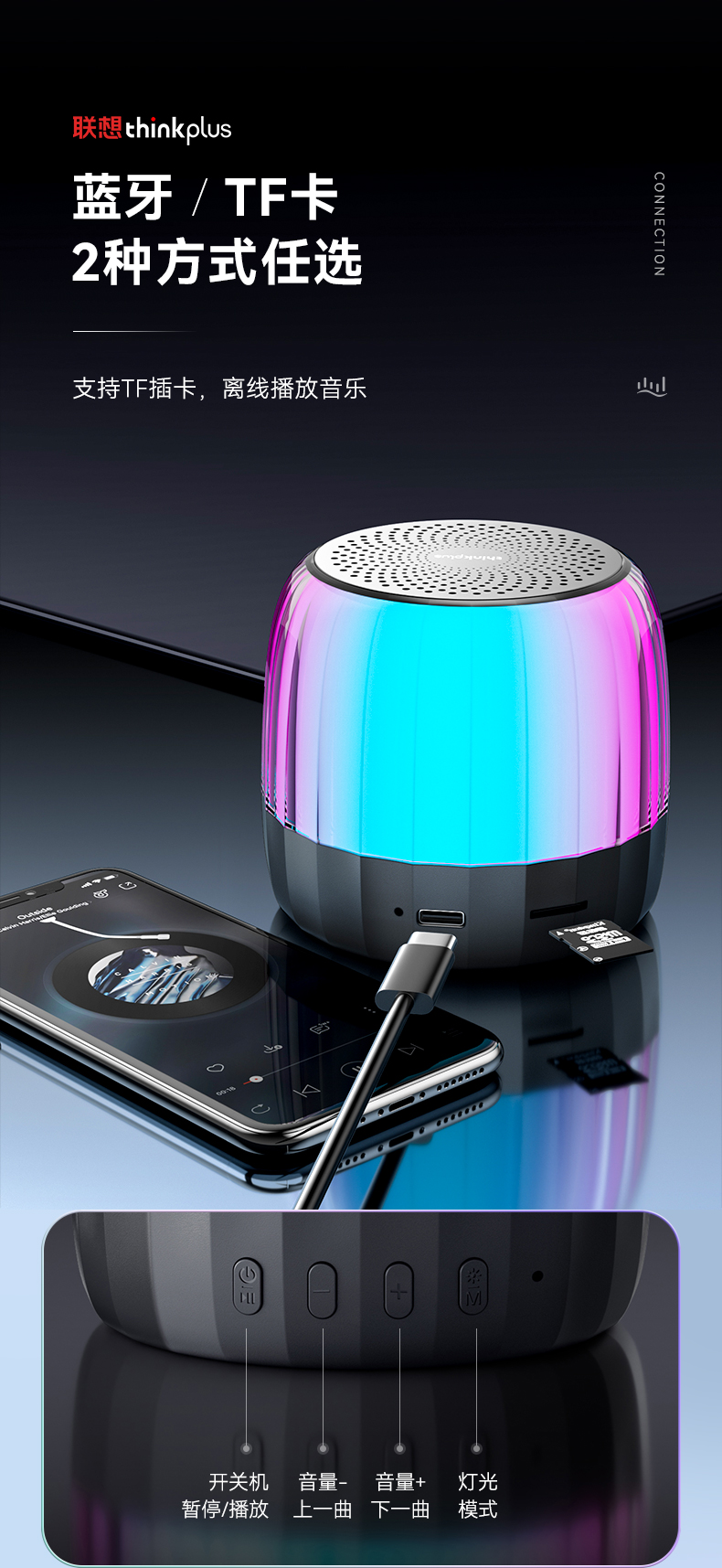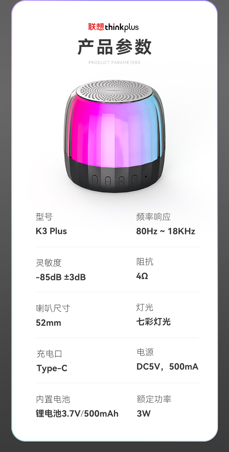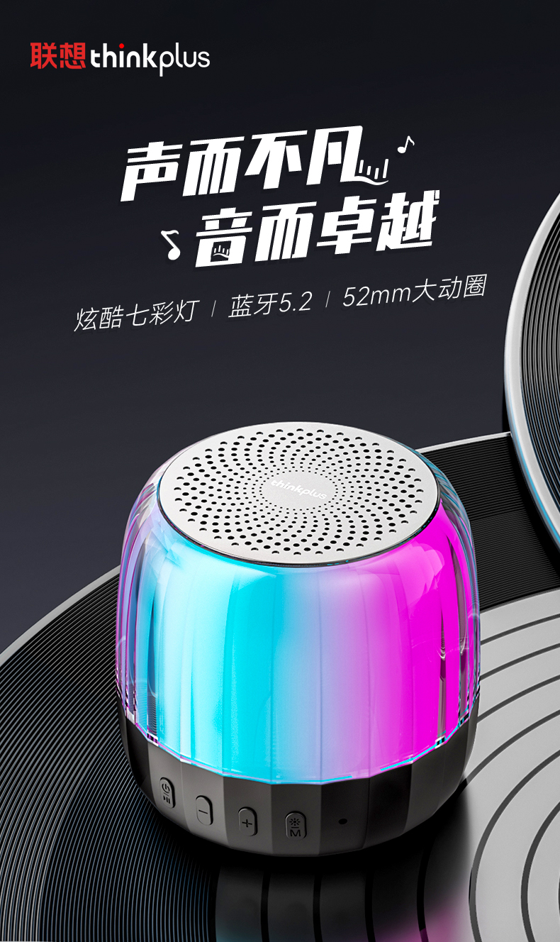 商品名称:联想(Lenovo)K3plus真无线蓝牙音箱 车载低音炮琉璃灯光便携可插卡TWS播 曜石黑