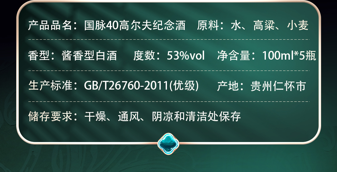 商品名称:国脉40高尔夫纪念酒 53度酱香型白酒 纯粮食白酒 礼盒装 100ml*5瓶