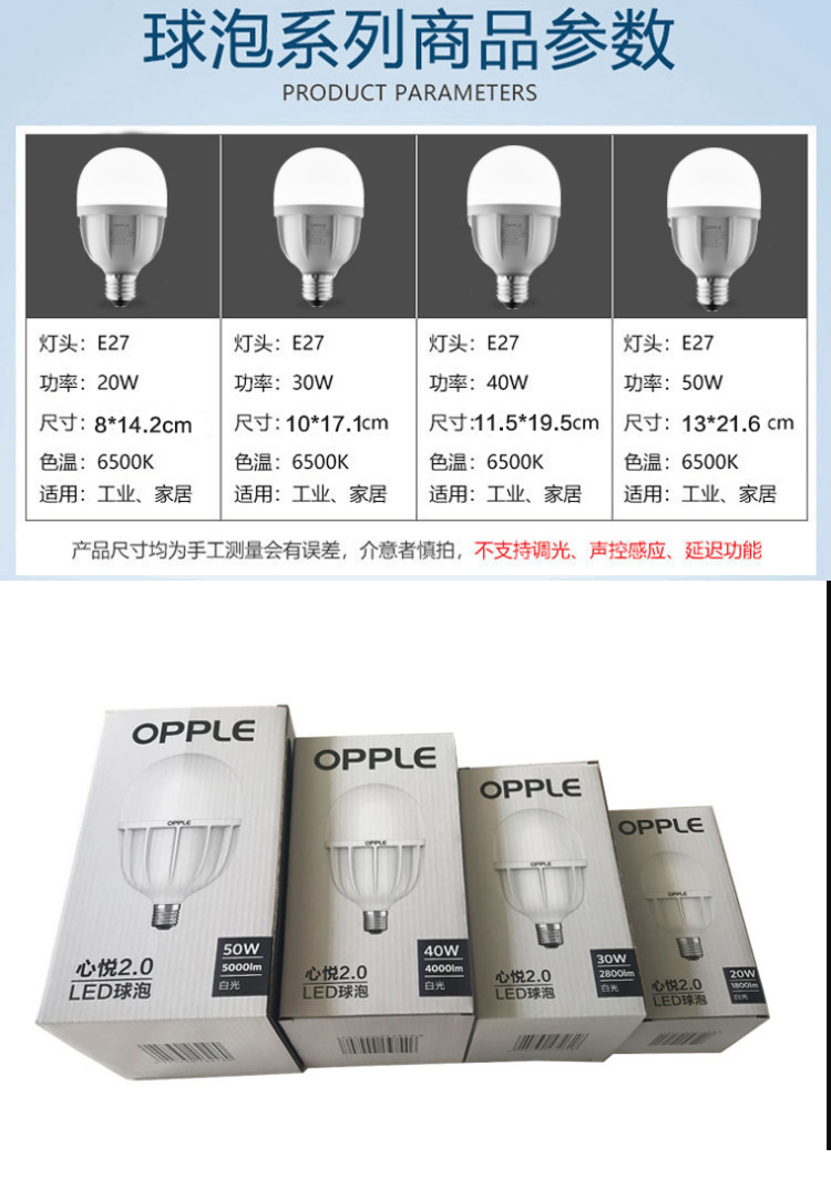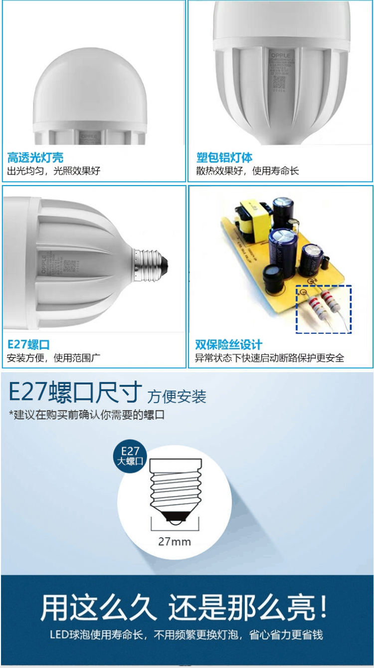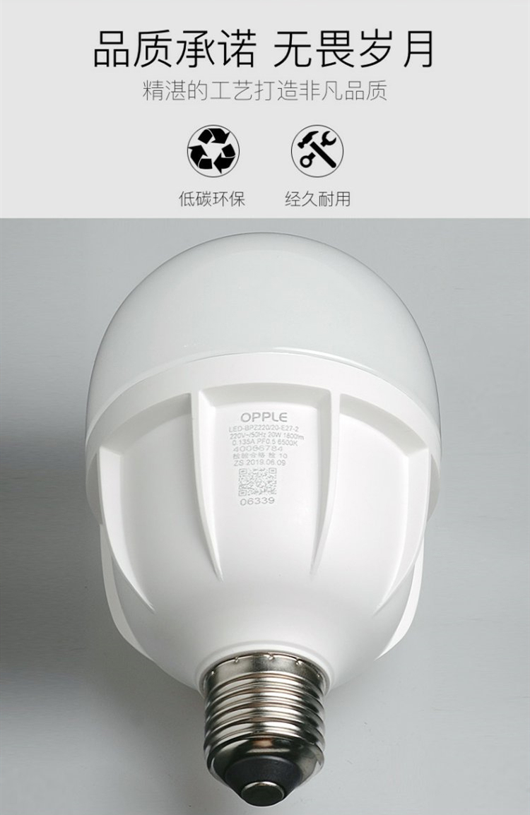 商品名称:欧普照明(OPPLE) LED球泡-心悦Ⅱ代-T100-30W-E27-6500K白光 白色