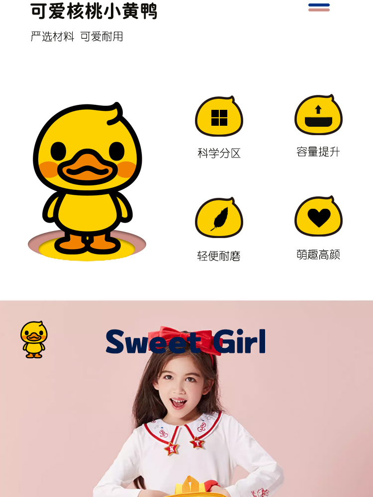 商品名称:秀乐途SurelaptopX walnutduck核桃小黄鸭时尚IP儿童背包书包 黄色