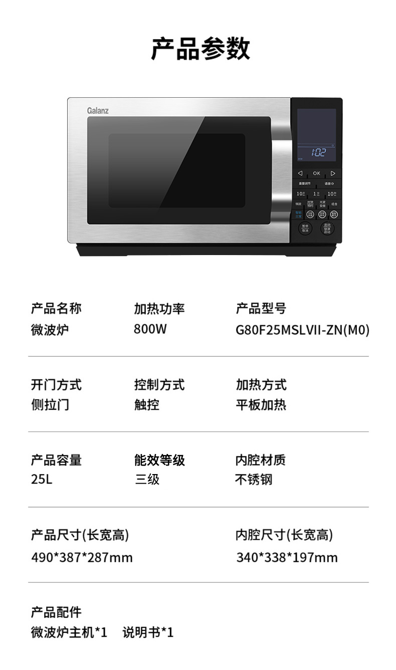 商品名称:格兰仕(Galanz) 微波炉 G80F25MSLVII-ZN(M0)(单位:台) 银白色