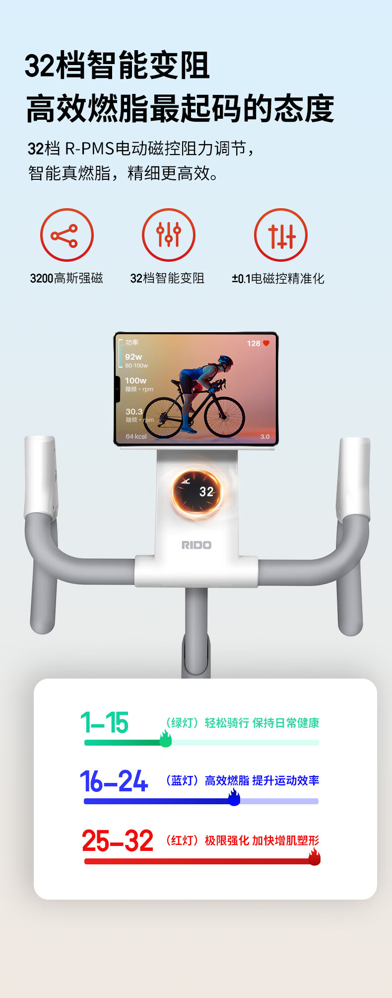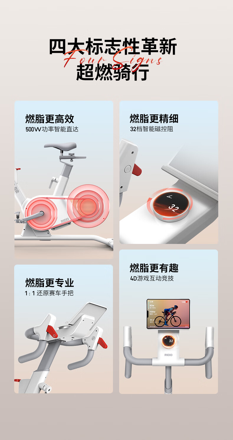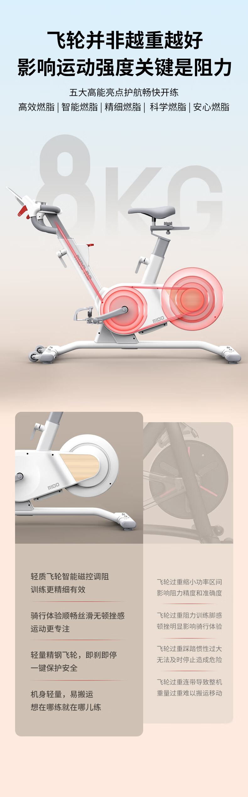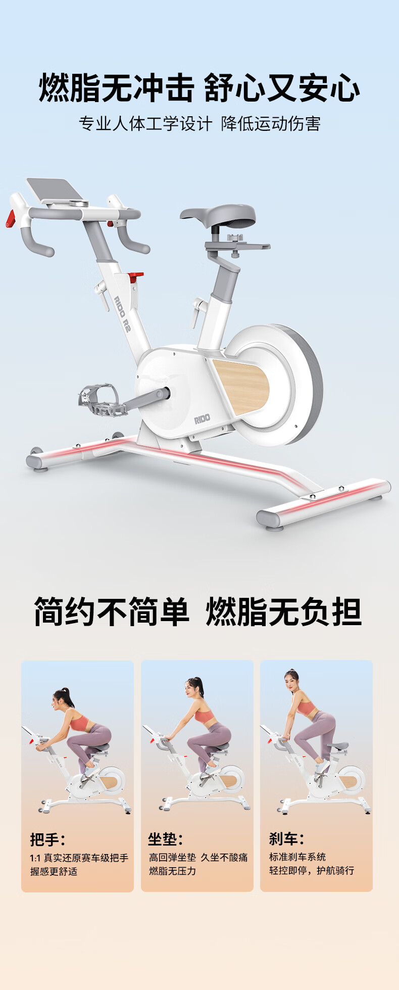 商品名称:力动(RIDO)动感单车家用健身单车智能调阻磁控轻音器材室内脚踏自行车R2 白色