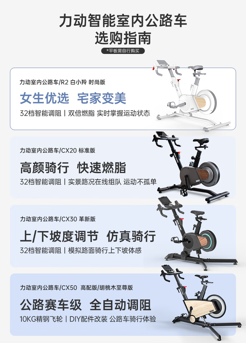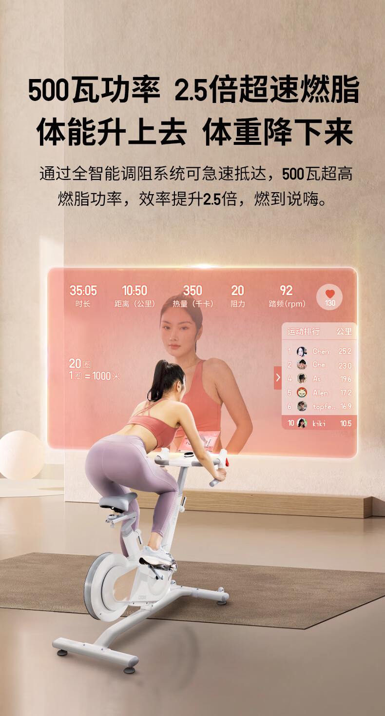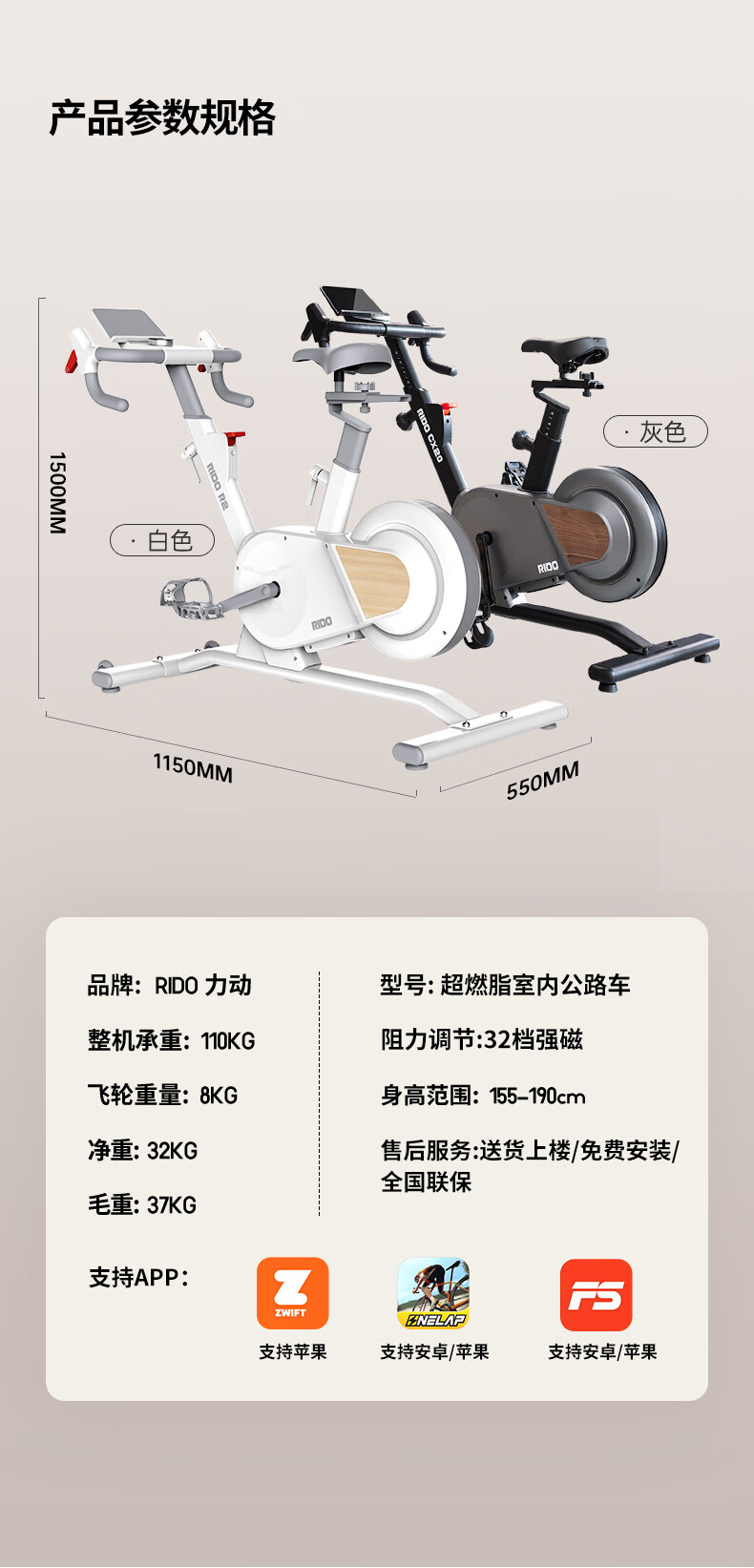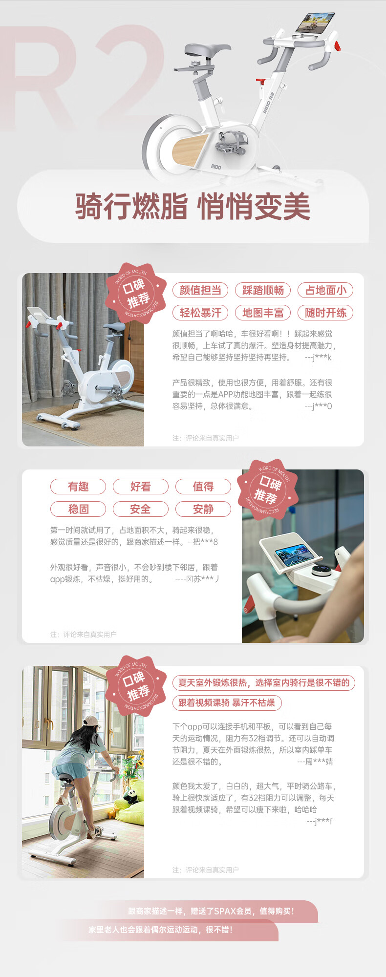 商品名称:力动(RIDO)动感单车家用健身单车智能调阻磁控轻音器材室内脚踏自行车R2 白色