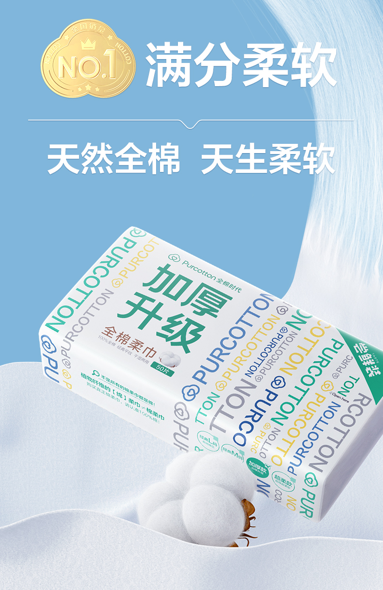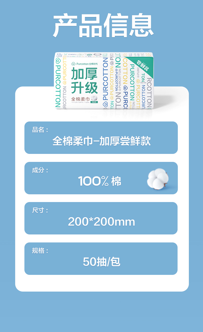 商品名称:全棉时代棉柔巾加厚款 200mm*200mm 50片/包 9.9元专属 白色
