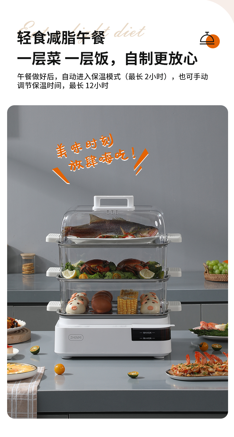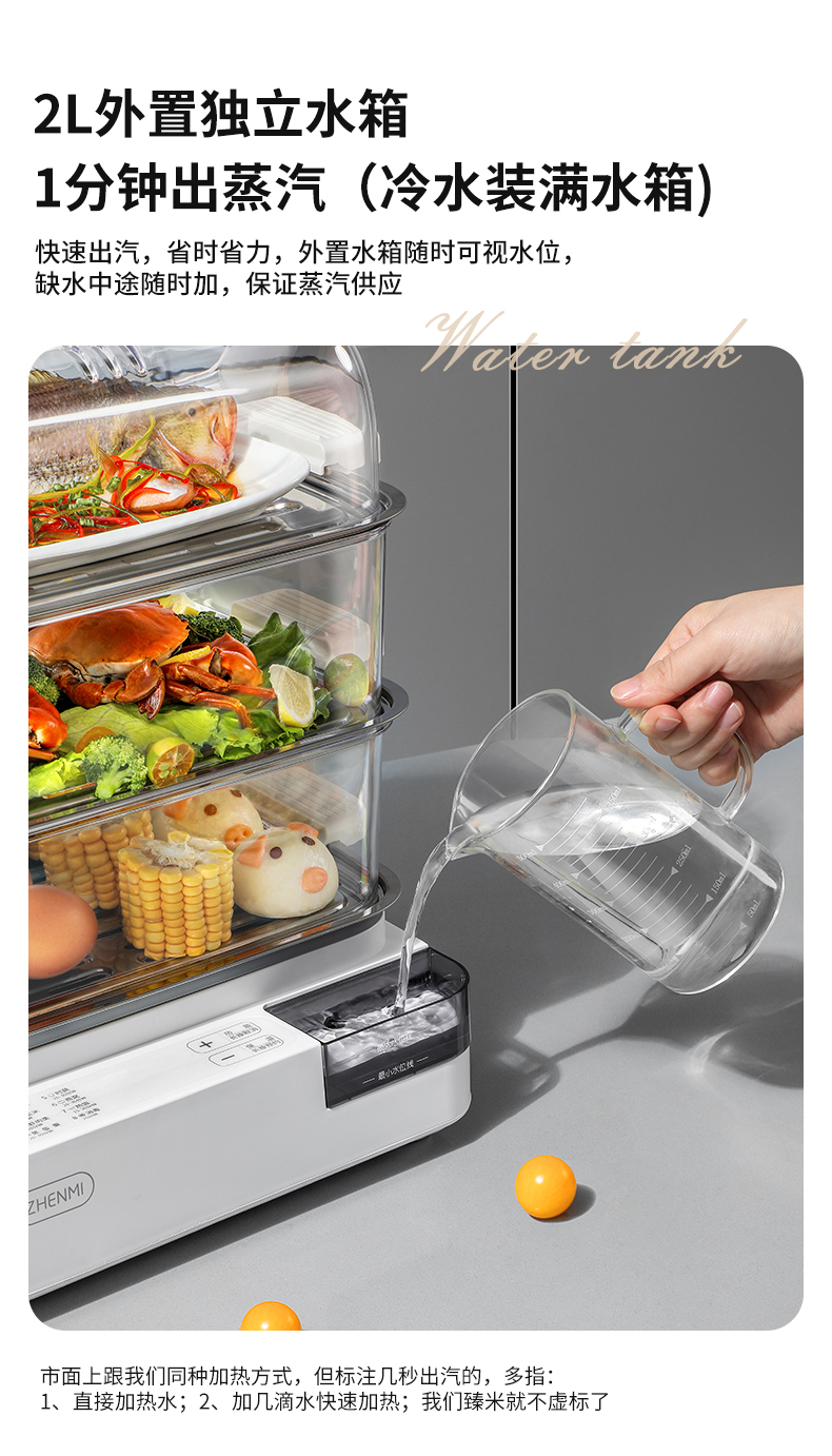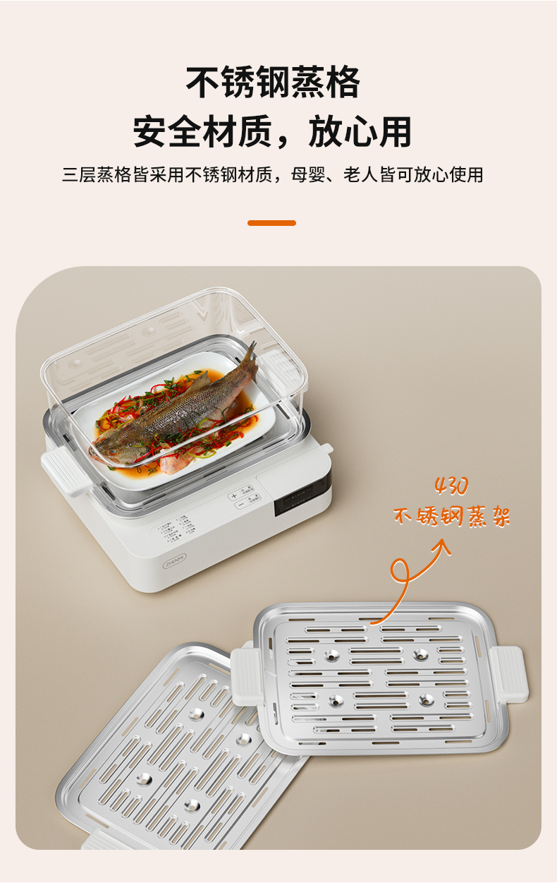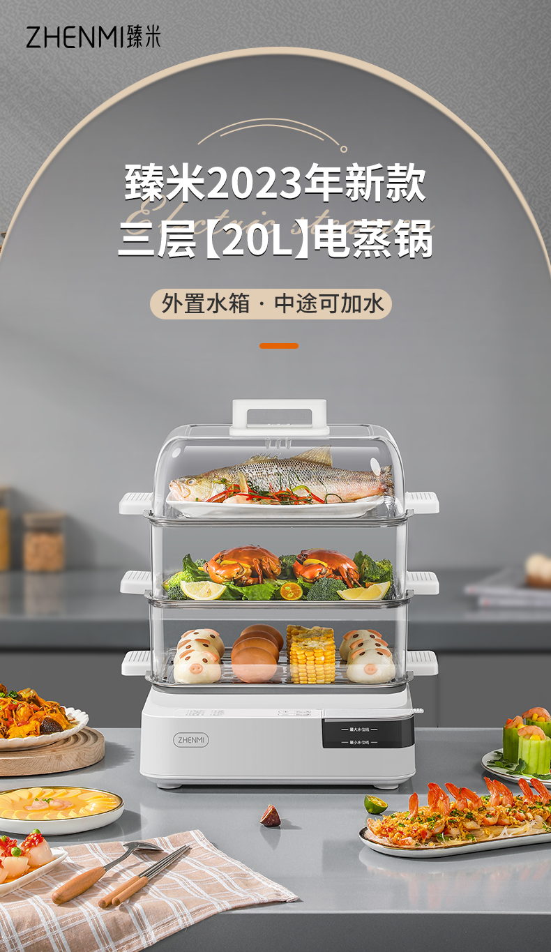 商品名称:臻米不锈钢蒸锅电蒸锅家用蒸汽锅小型多功能大容量三层多层电蒸箱 ZMZG-11(单位:台) 白色
