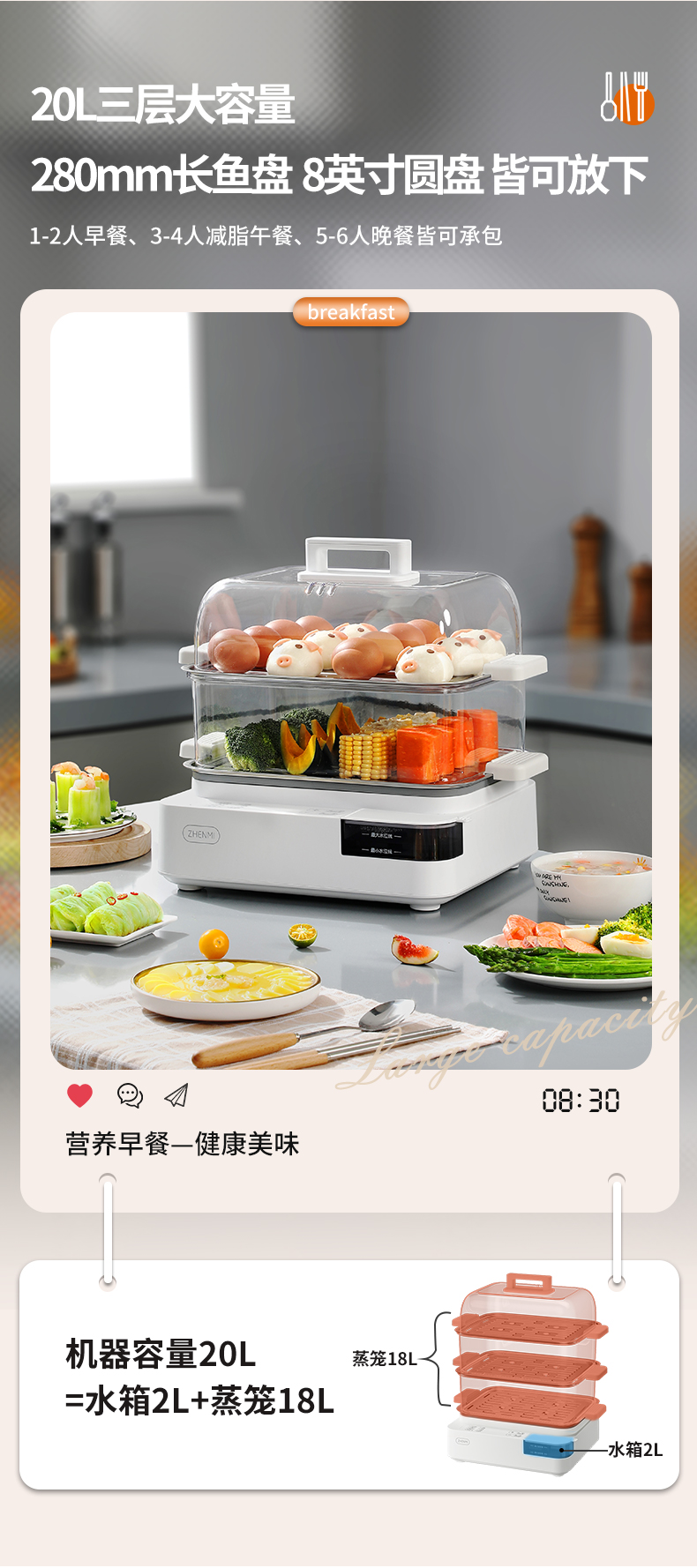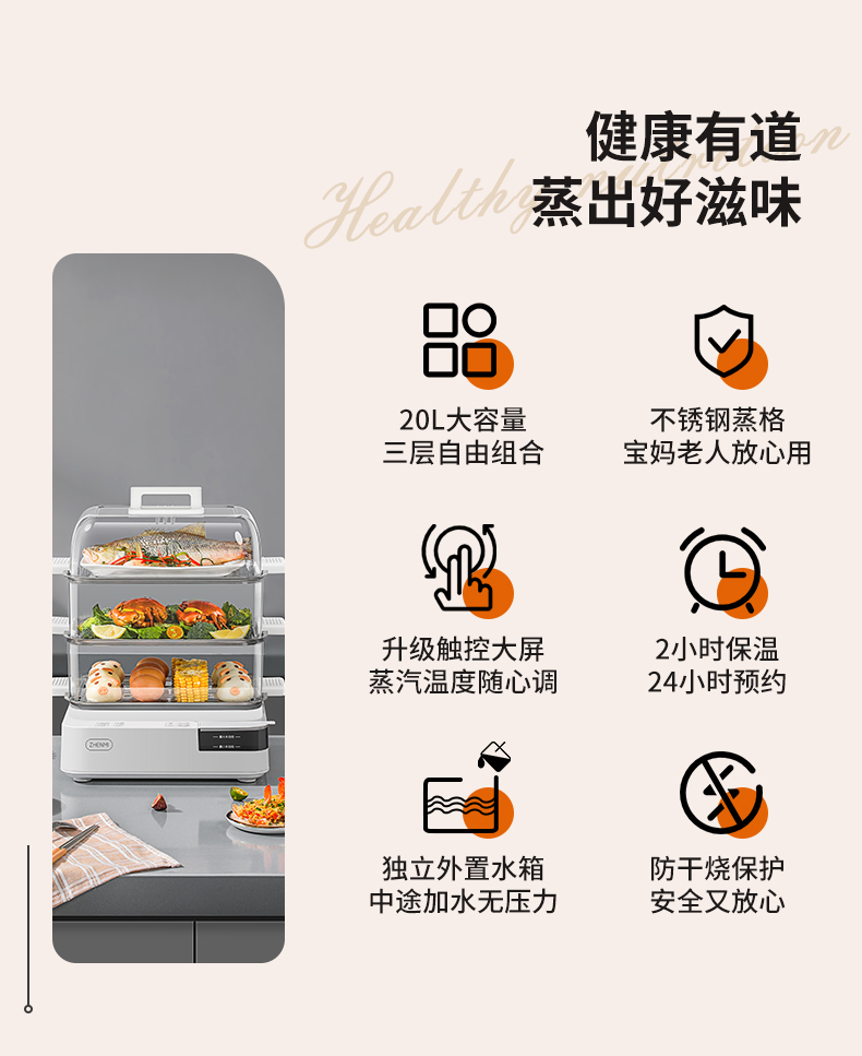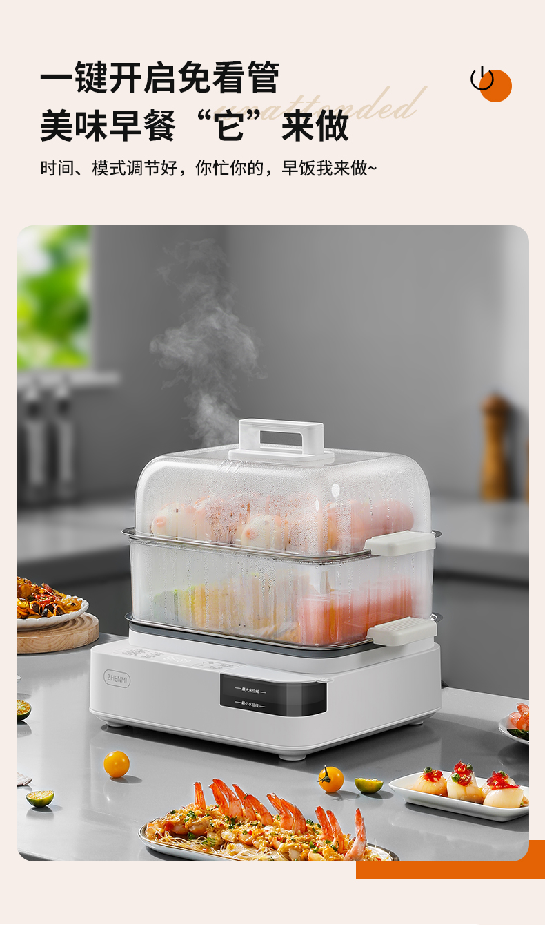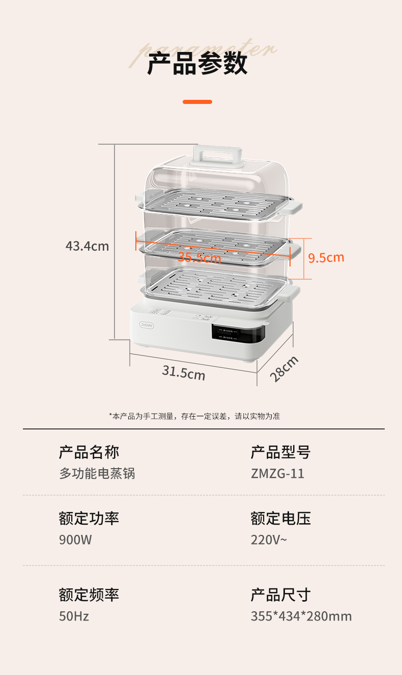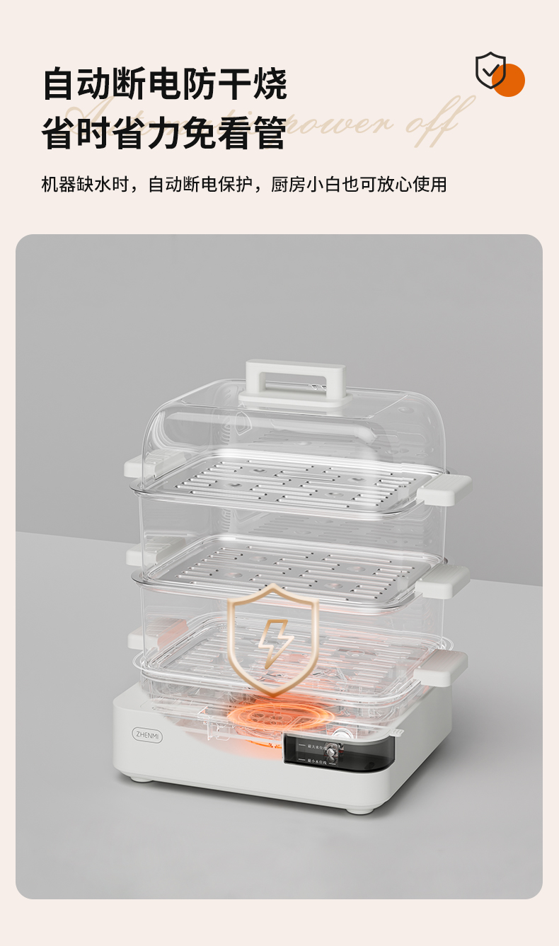 商品名称:臻米不锈钢蒸锅电蒸锅家用蒸汽锅小型多功能大容量三层多层电蒸箱 ZMZG-11(单位:台) 白色