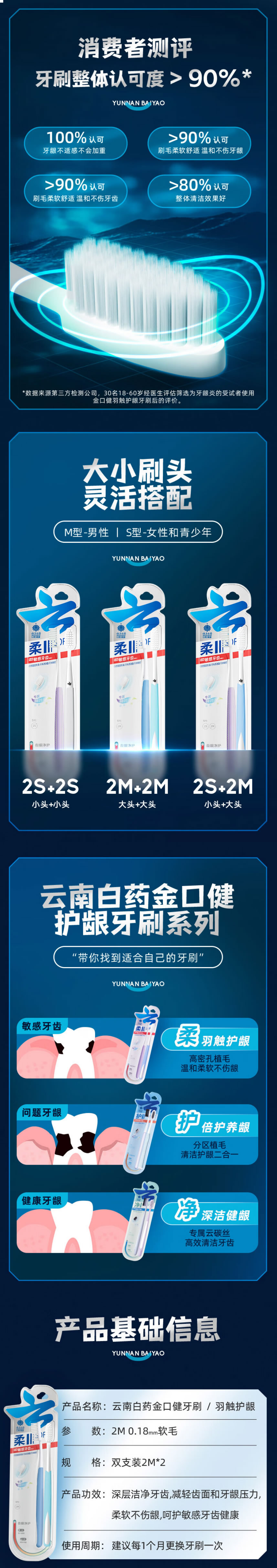 商品名称:云南白药金口健牙刷轻柔洁齿宽头6支装(单位:支) 敏感牙齿