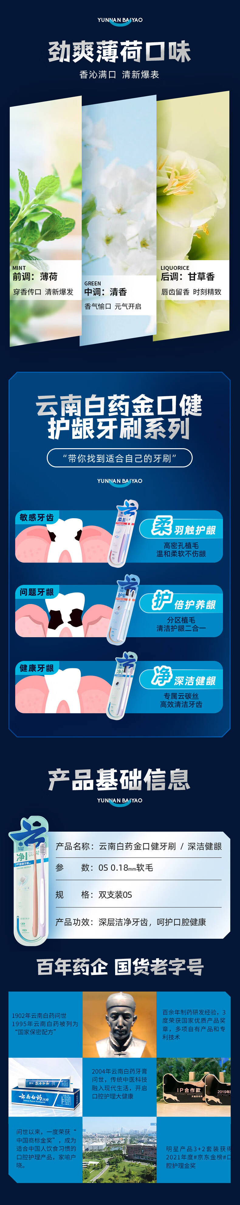 商品名称:云南白药金口健牙刷深澈洁净宽头6支装(单位:支) 深度清洁