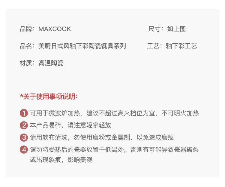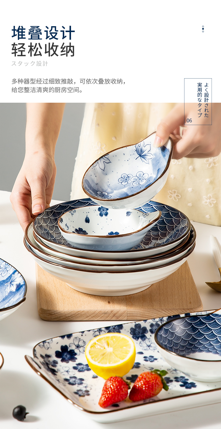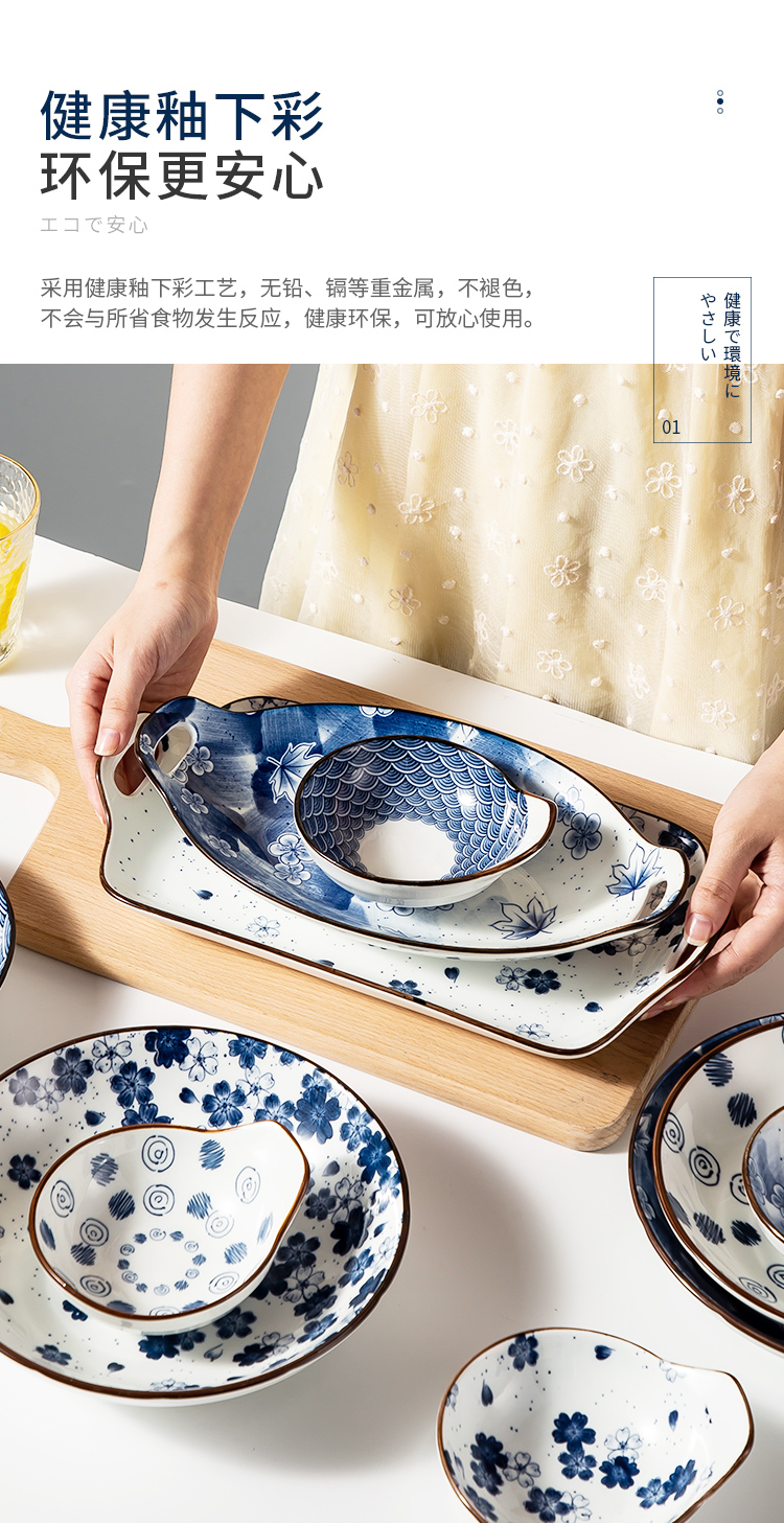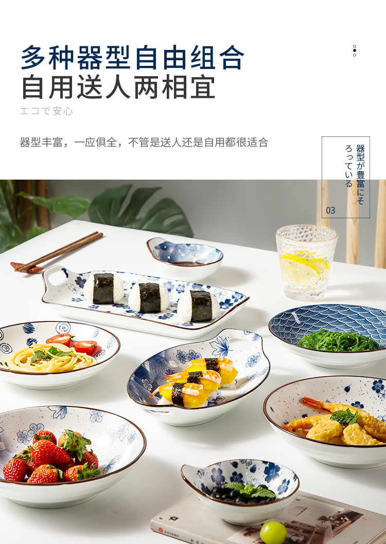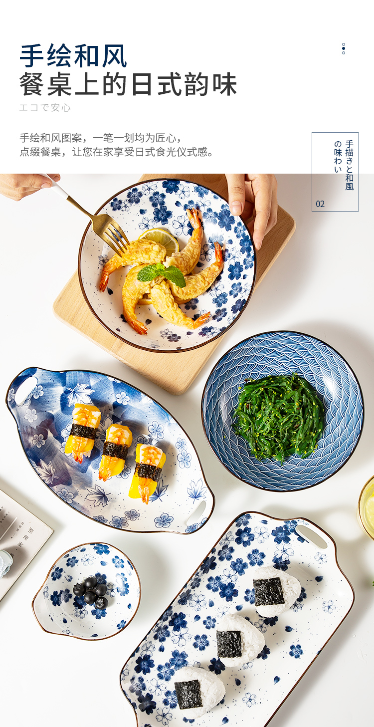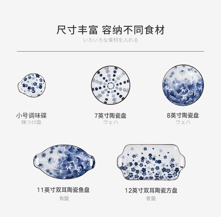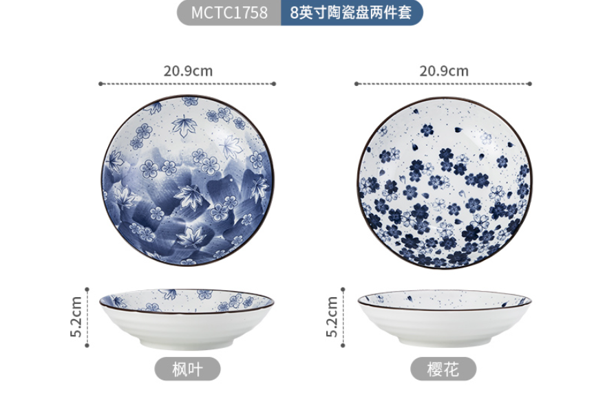 商品名称:美厨日式和风釉下彩8寸陶瓷盘两件套 MCTC1758 蓝色