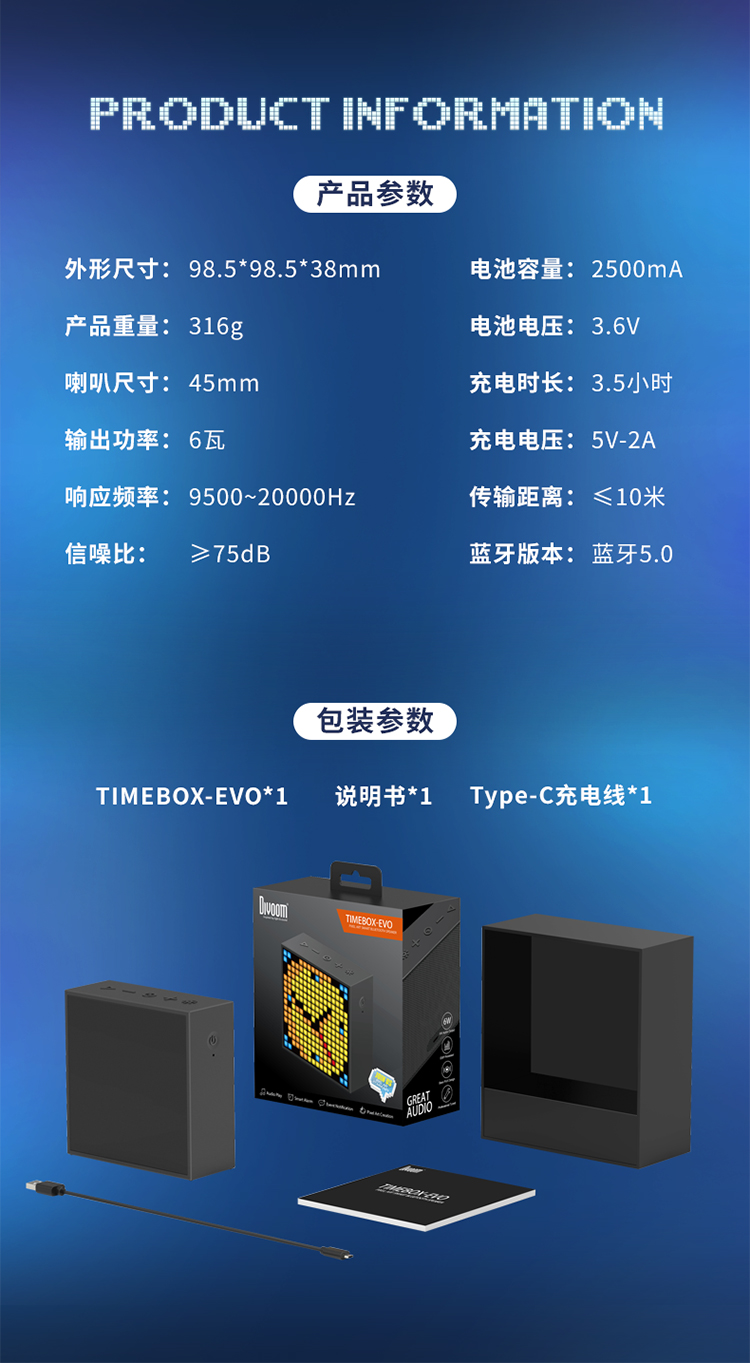 商品名称:点音Divoom像素魔方TimeBox-evo 黑色