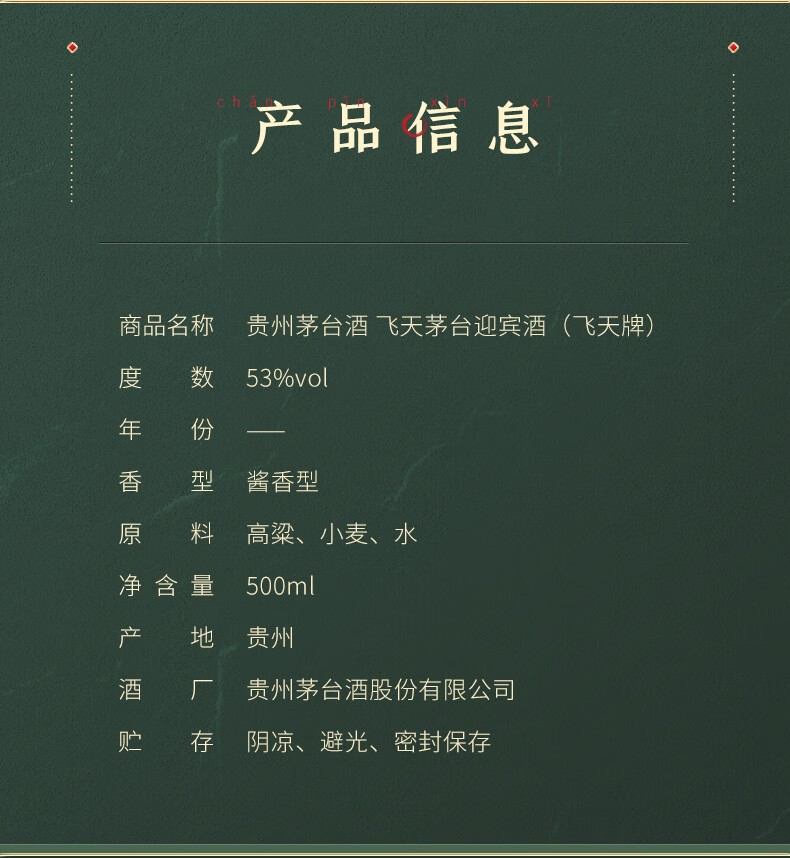 商品名称:茅台迎宾酒53 酱香型白酒 喜宴送礼 【含礼袋】500ml*2瓶