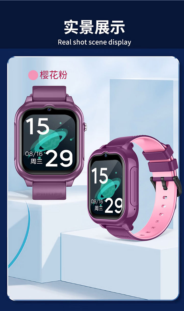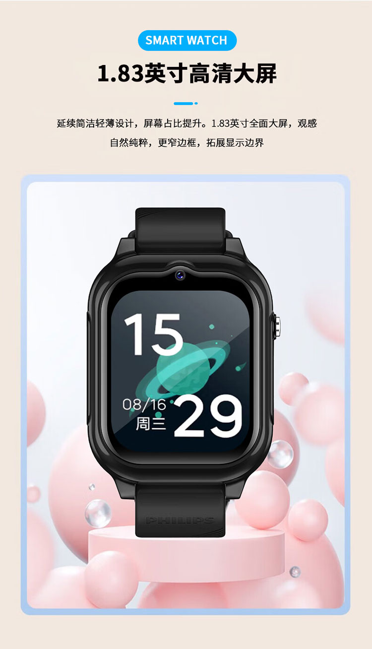 商品名称:飞利浦儿童电话手表学生精准定位智能全网通视频拍照防水W2215粉一个 樱花粉