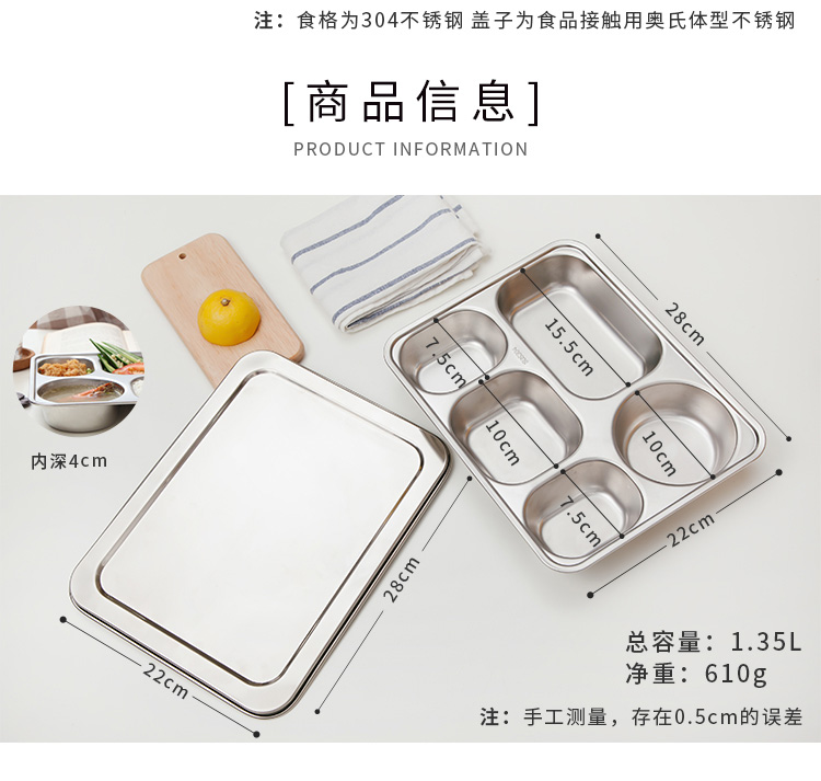 商品名称:美厨304不锈钢大号餐盘(带盖)MCFT724(单位:个)