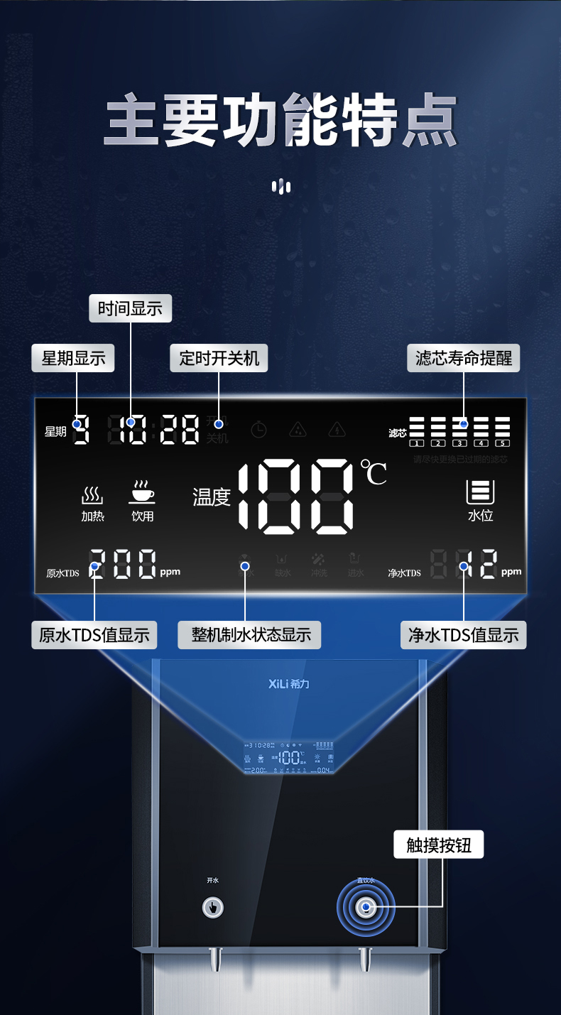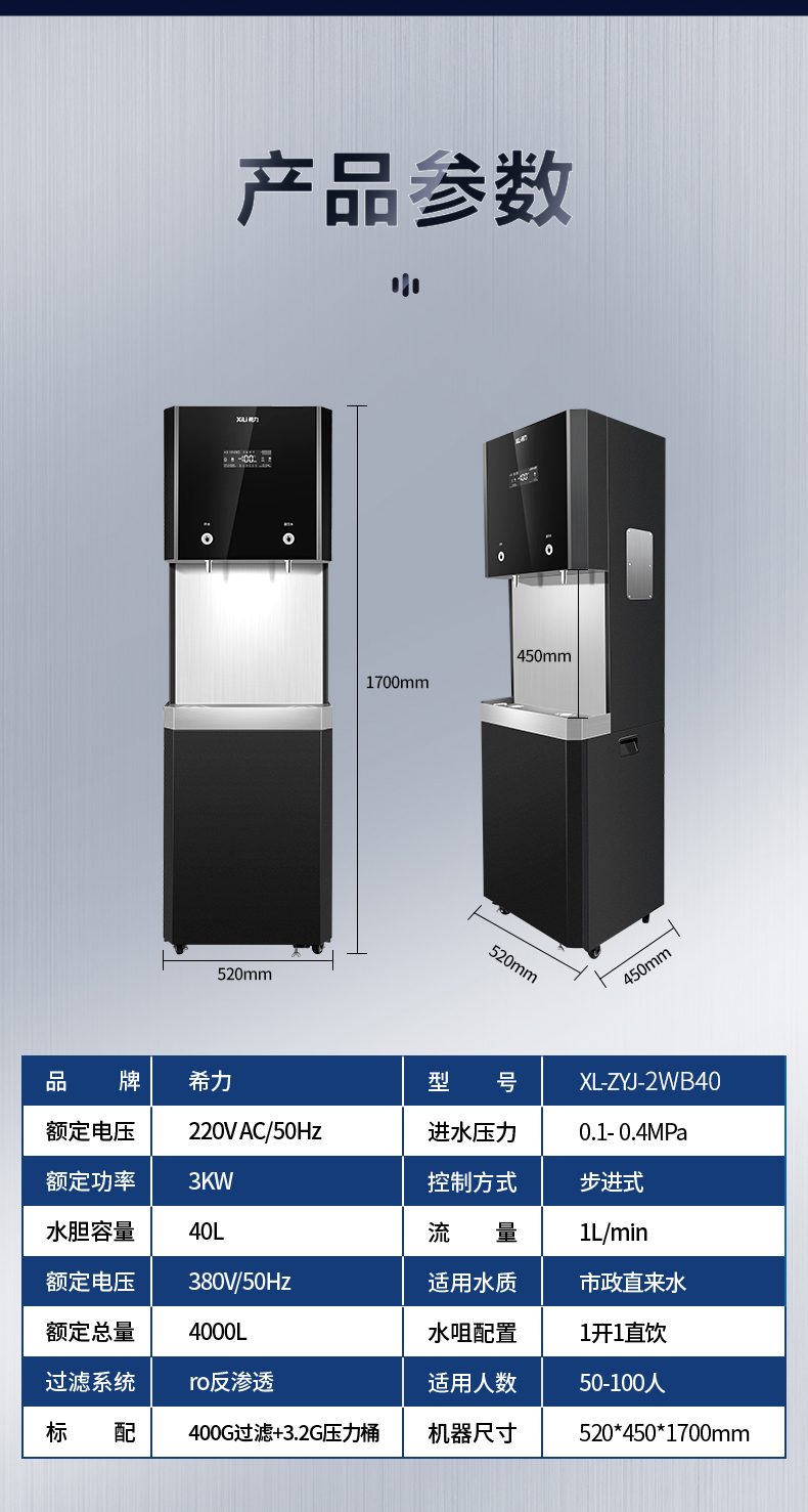 商品名称:希力(XILI WATER)商用饮水机 XL-2WB40 冷热出水智能饮水机 RO反渗透净水 台 黑色