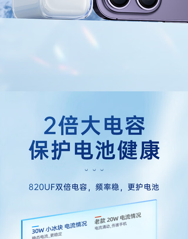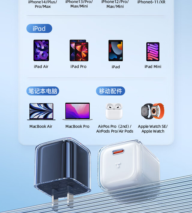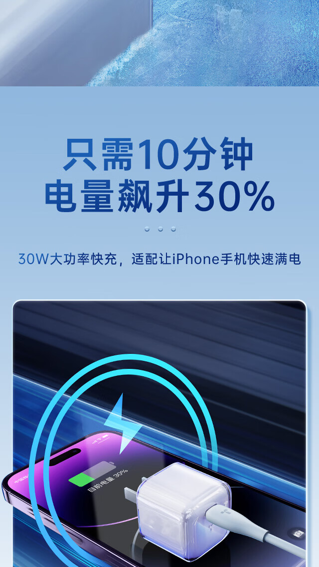 商品名称:图拉斯小冰块新苹果15充电器快充头30w氮化镓套装USB-C线插口认证 【iPhone15快充套装】 冰透白