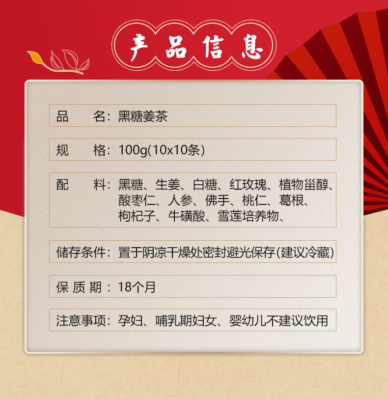 商品名称:北京同仁堂 养生茶玫瑰佛手黑糖姜茶10g*10袋/盒 1盒装【体验装】