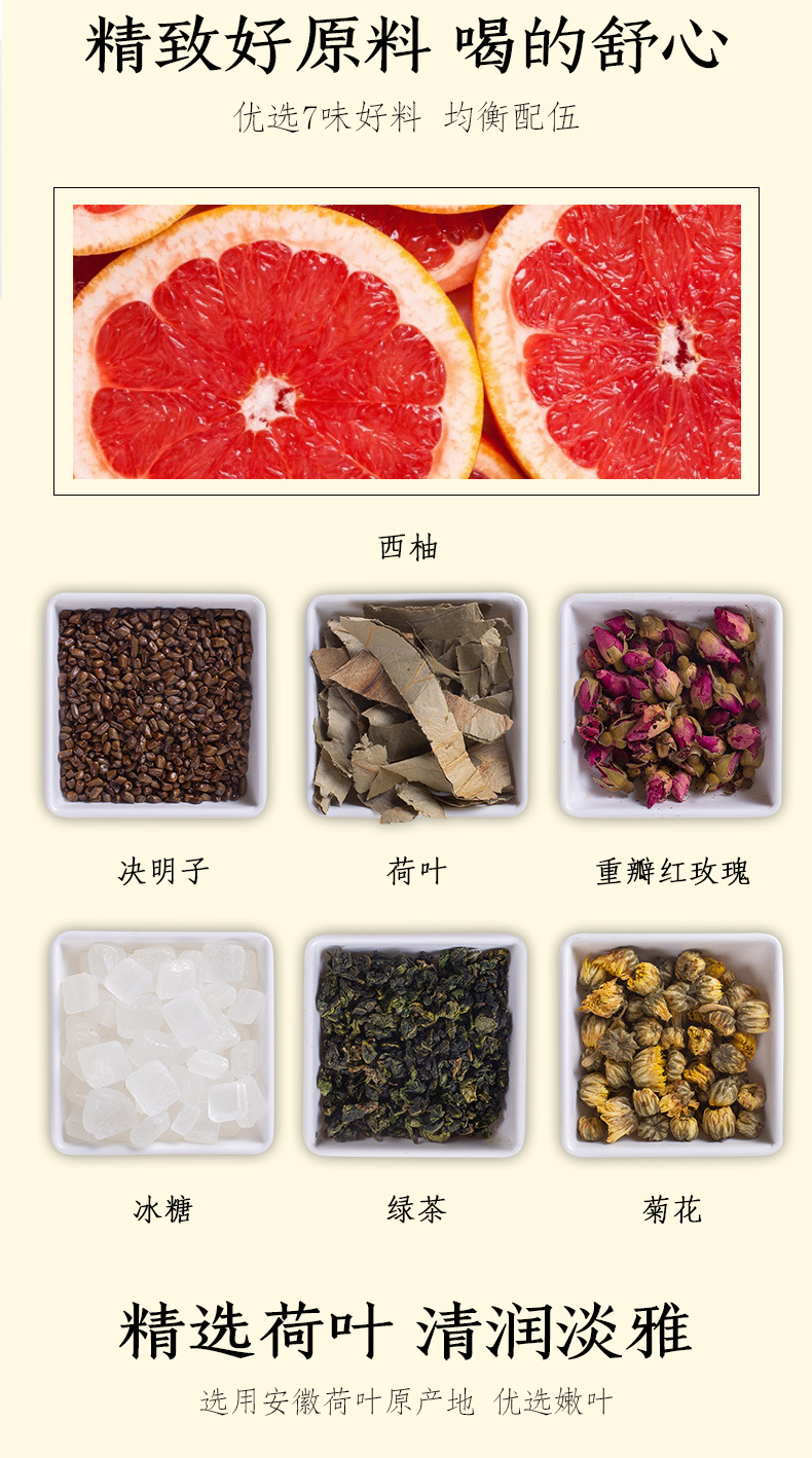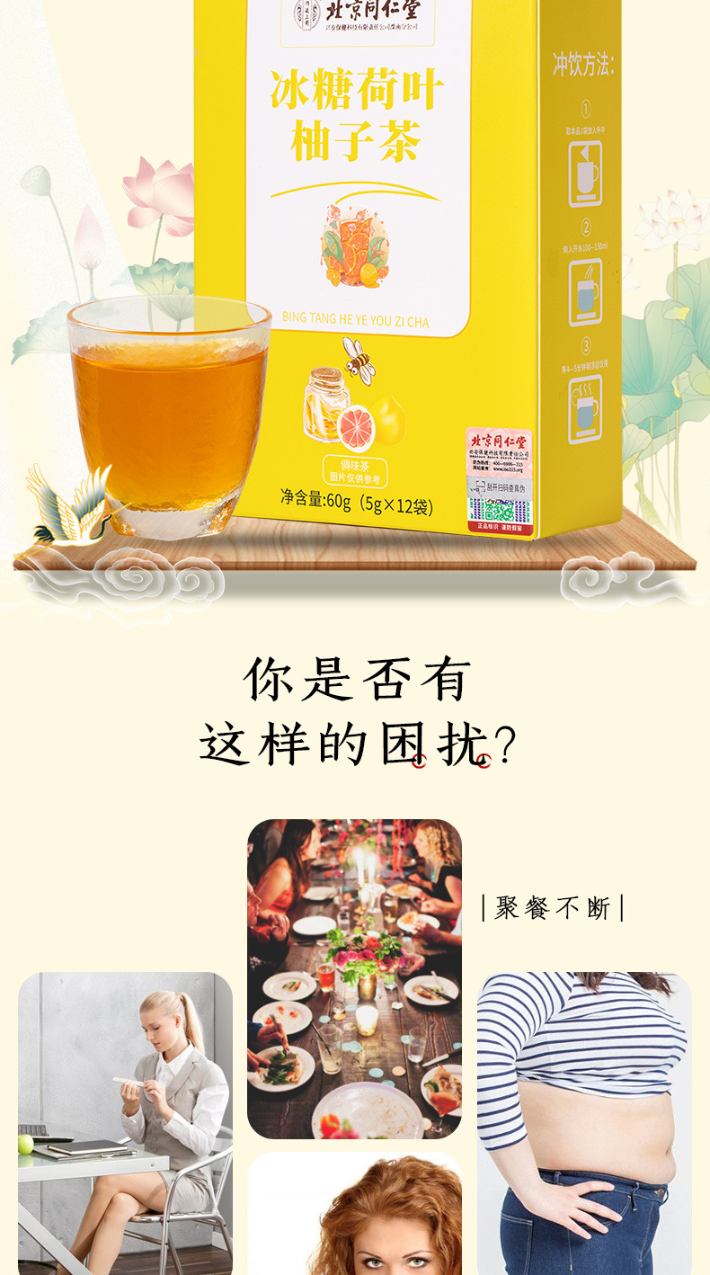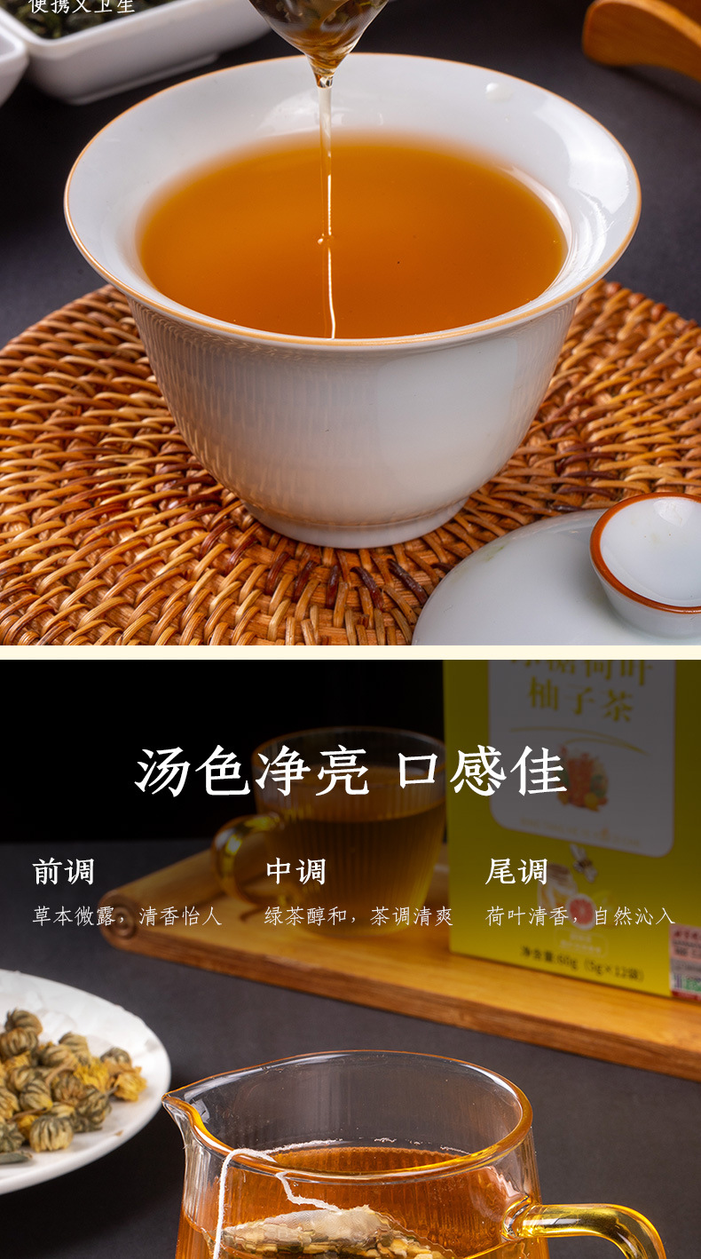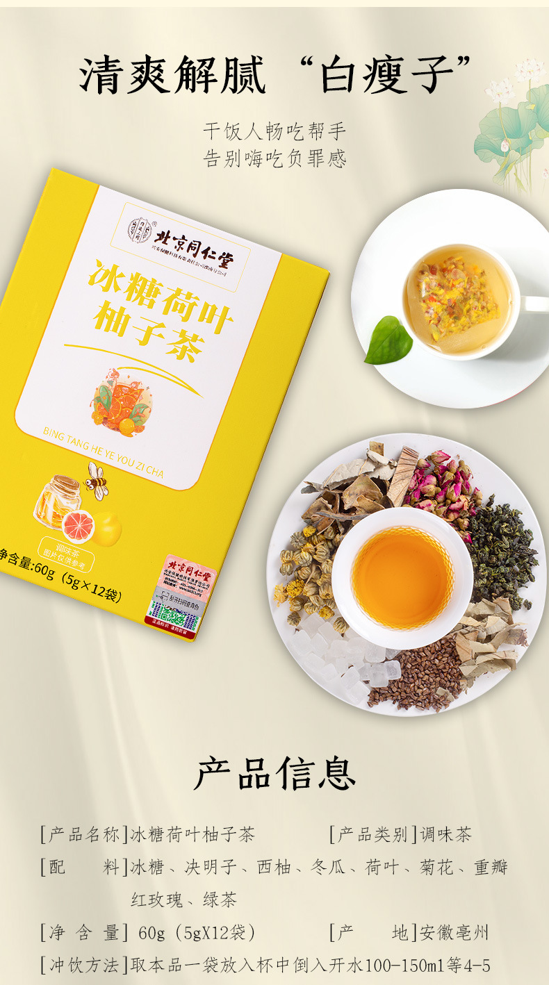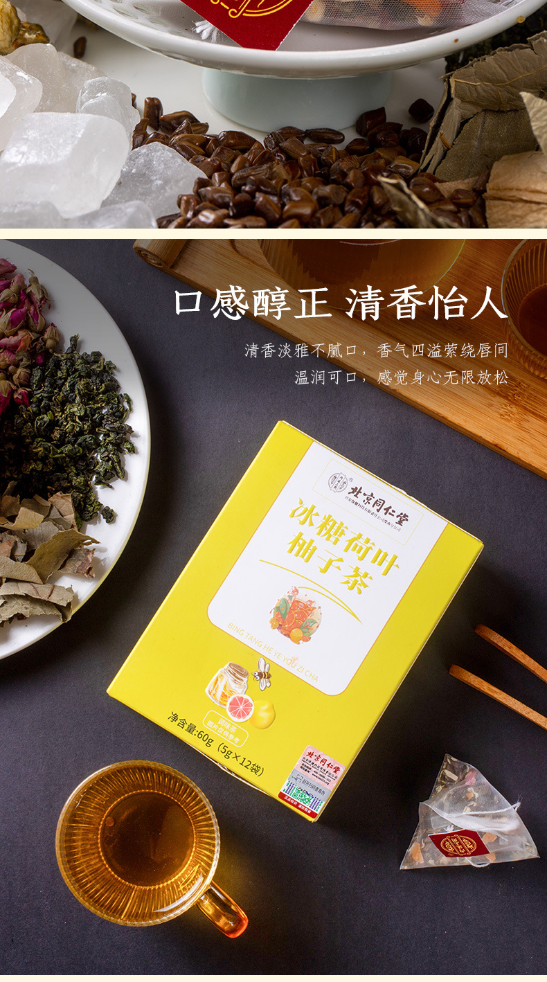 商品名称:北京同仁堂冰糖荷叶柚子茶决明子西柚水果花茶三角包5g*12袋/盒 1盒装【体验装】
