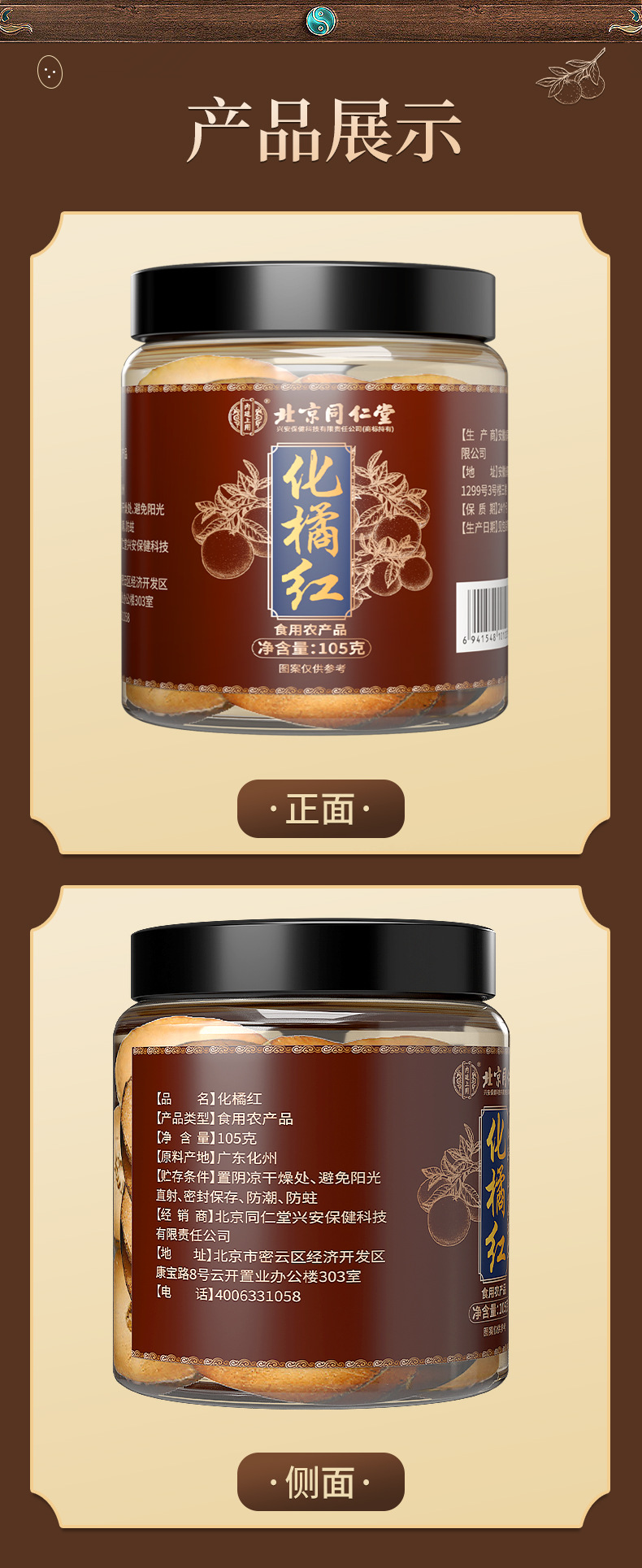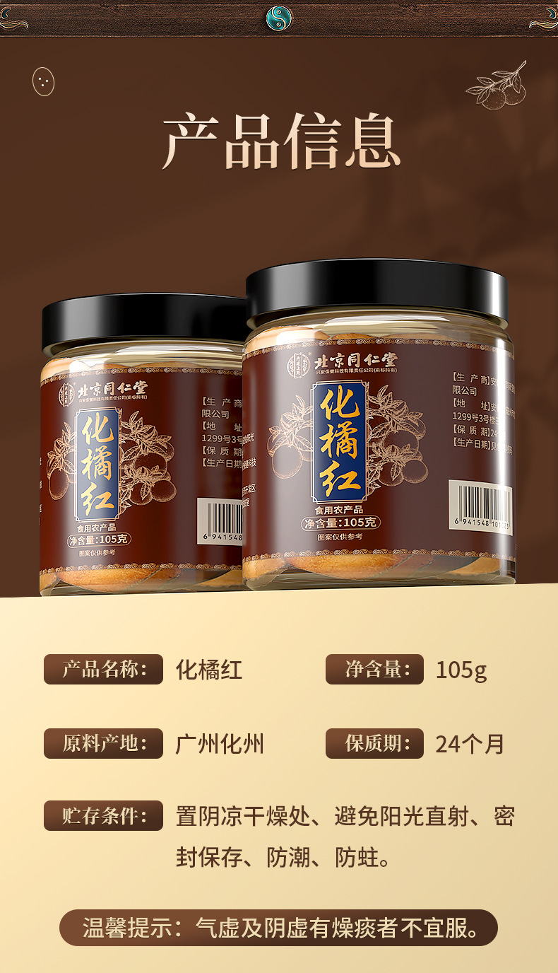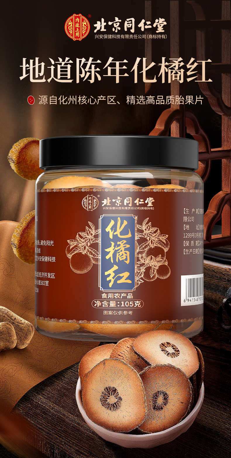 商品名称:北京同仁堂化橘红正宗陈年化州橘红皮果片桔红片105g/盒 1盒装【体验装】