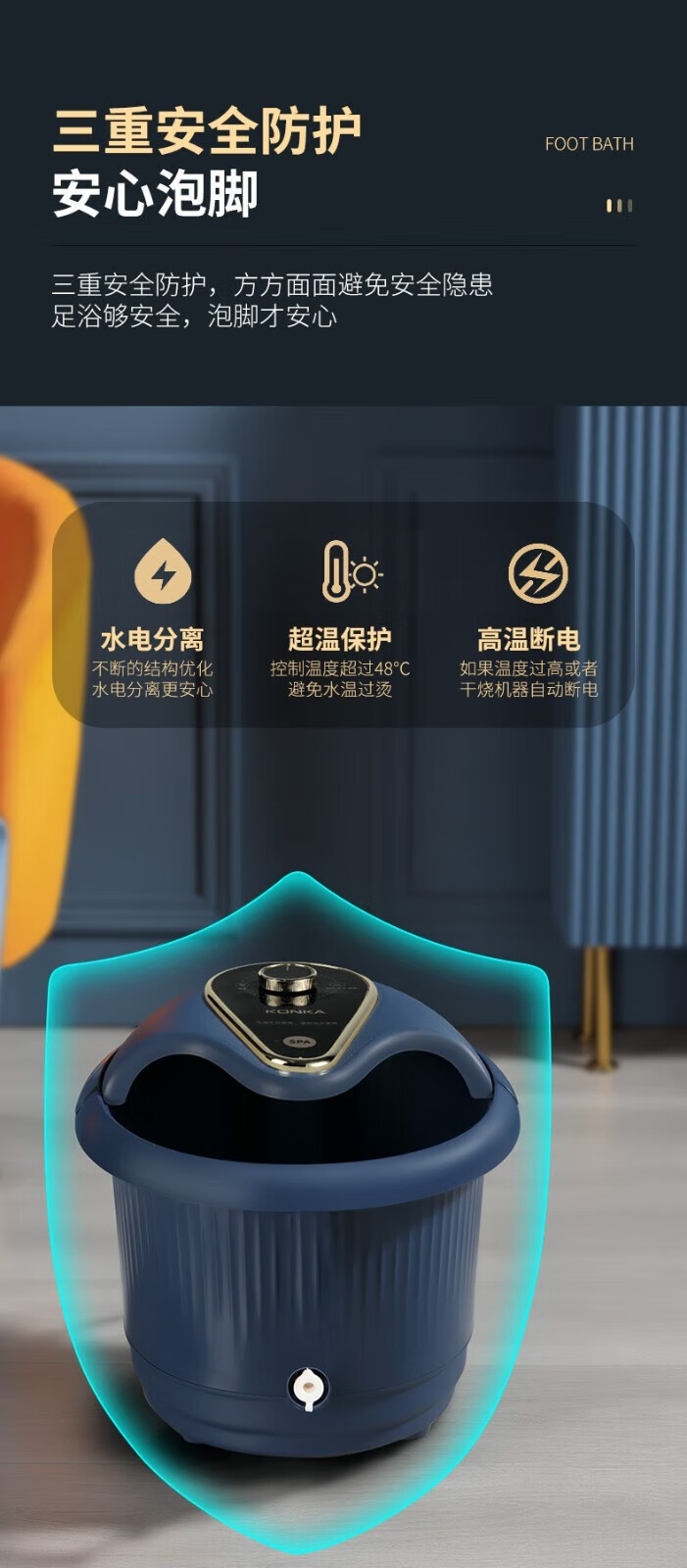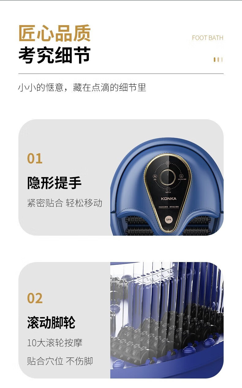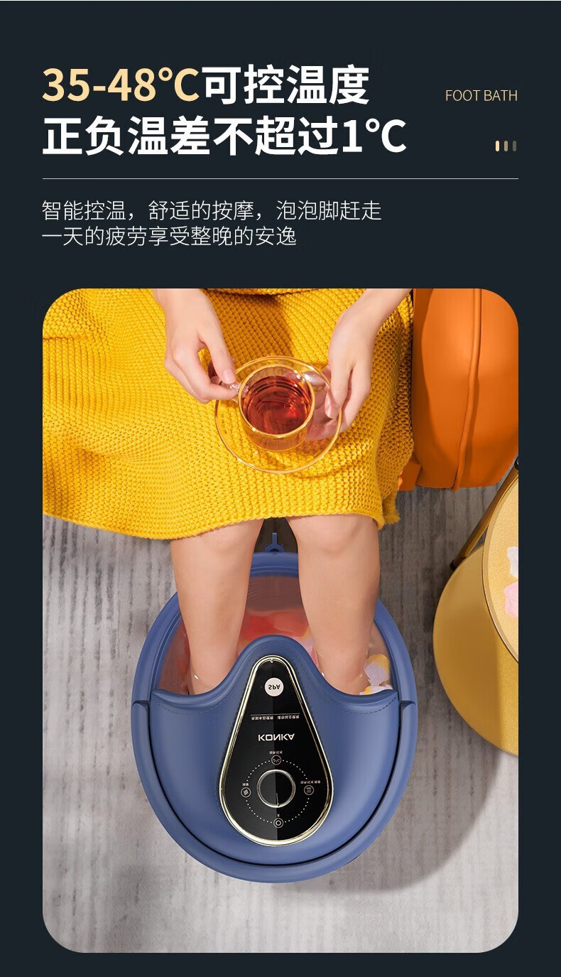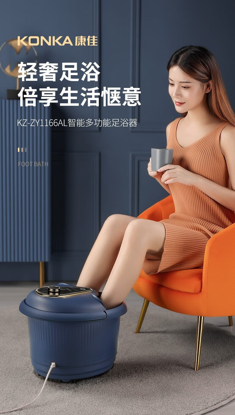商品名称:康佳(KONKA) 足浴盆全自动电动按摩洗脚小型加热泡脚桶KZ-ZY1166AL(台) 灰蓝色