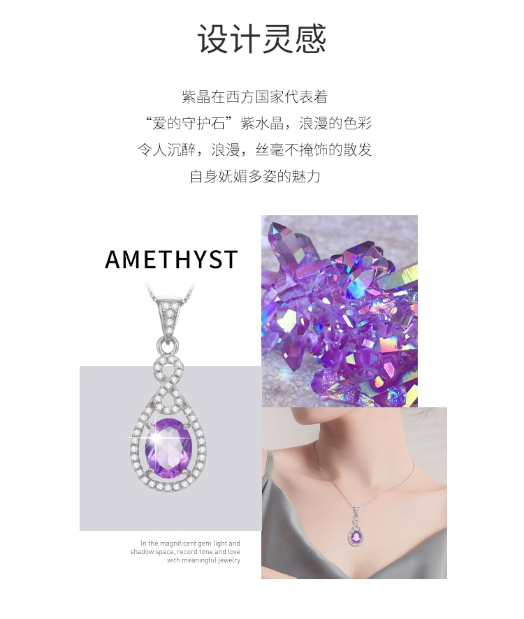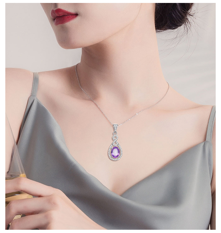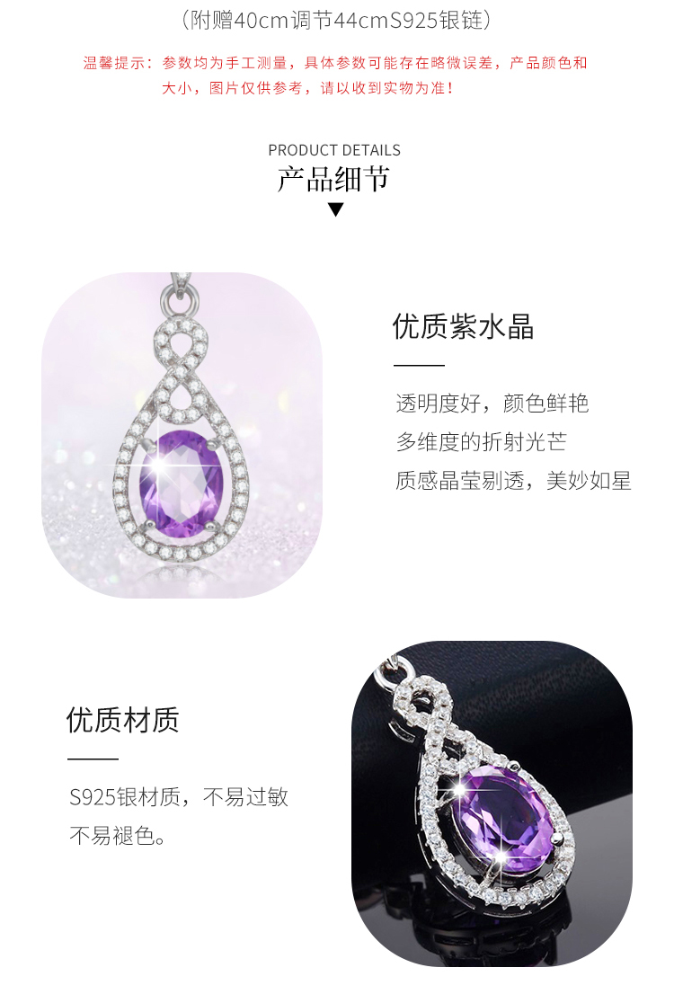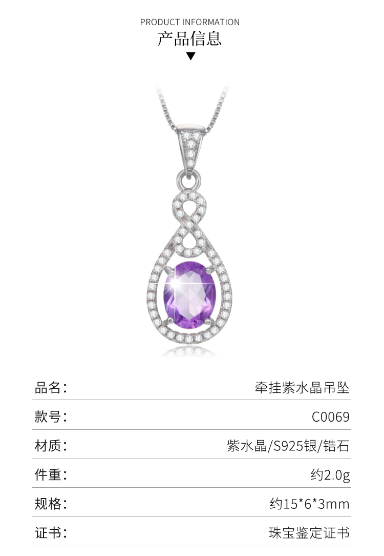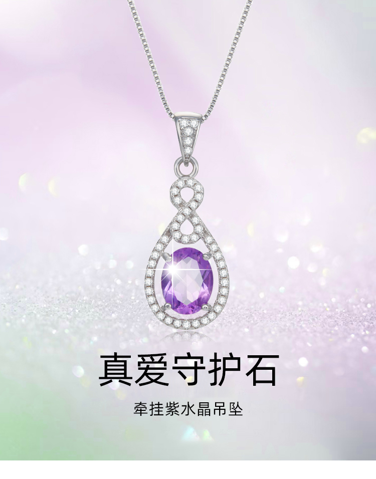 商品名称:周贝贝珠宝 牵挂 1.7克拉紫晶女士吊坠(赠S925银项链) C0069 银色