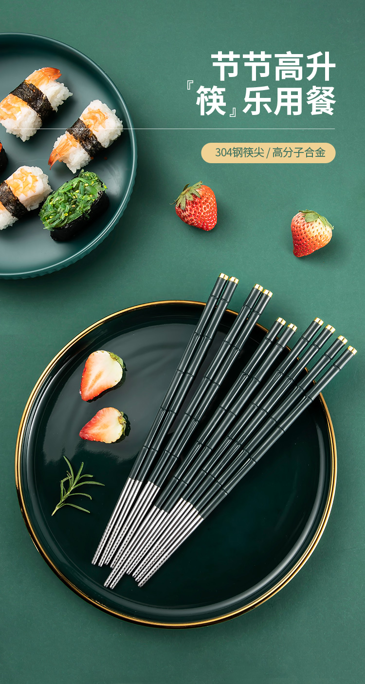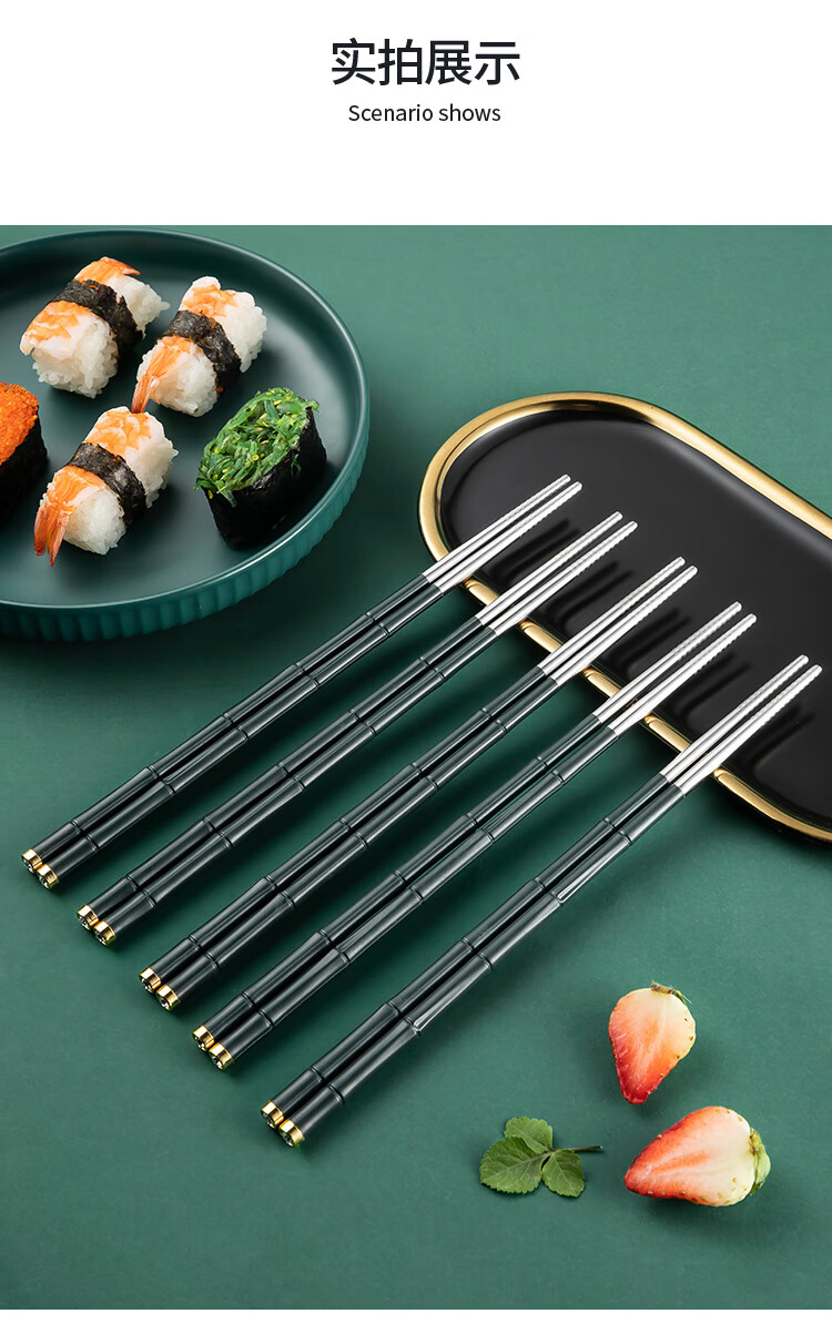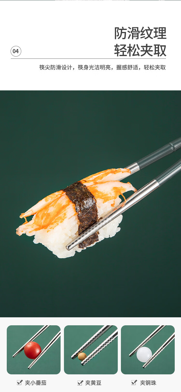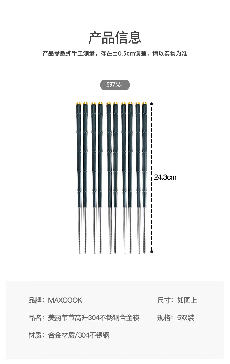 商品名称:美厨节节高升304不锈钢合金筷子5双装 MCK5702