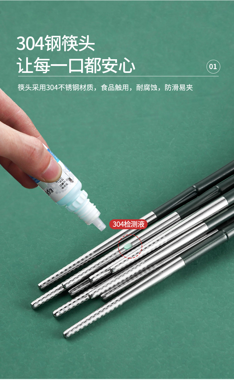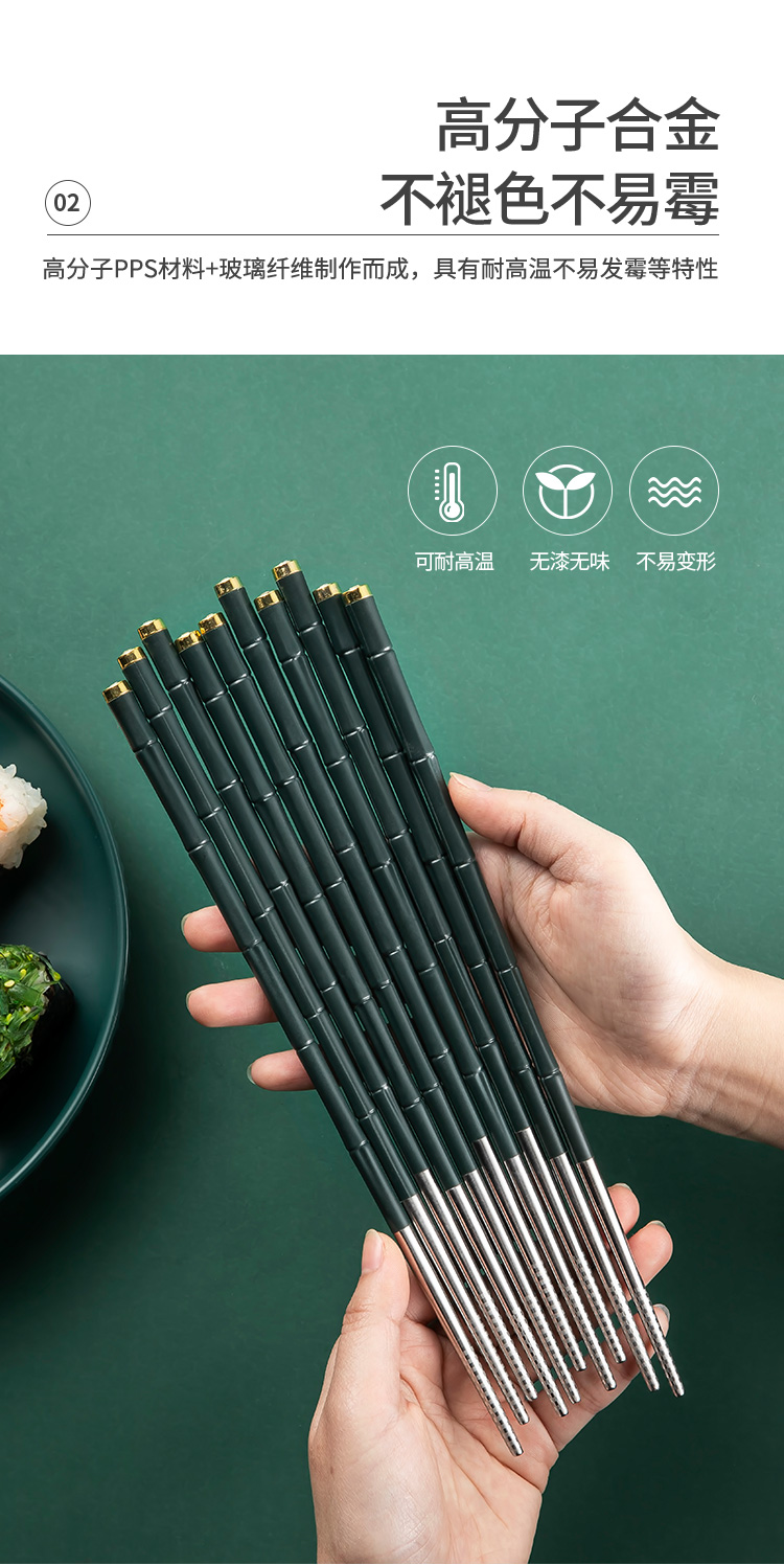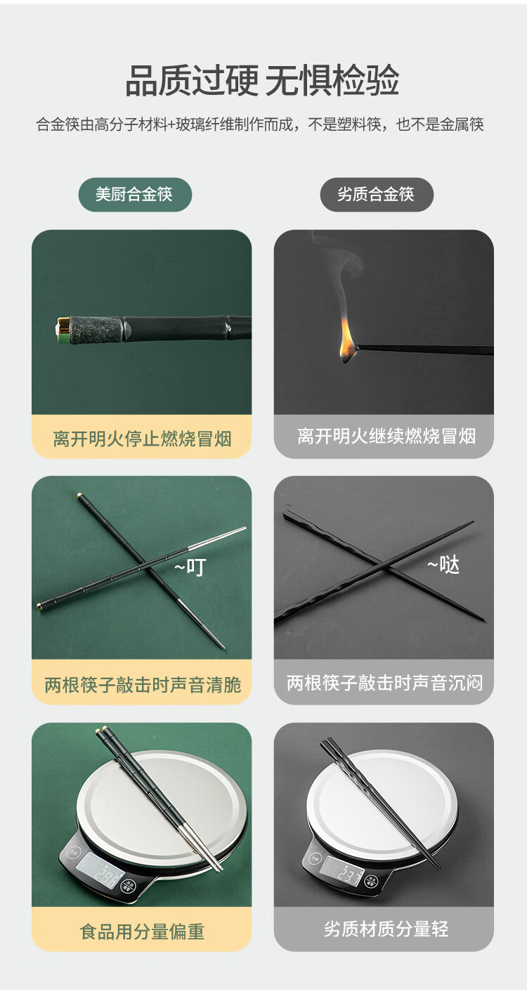 商品名称:美厨节节高升304不锈钢合金筷子5双装 MCK5702