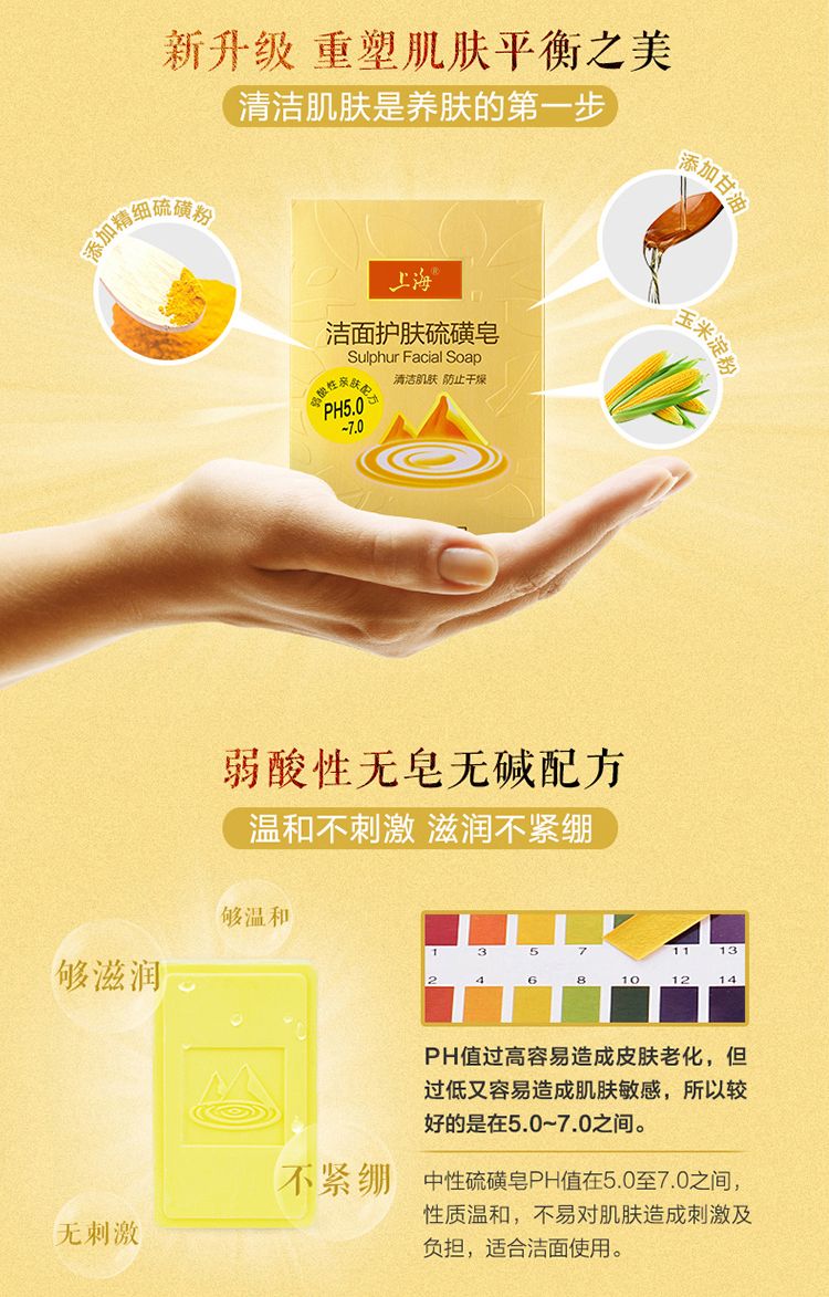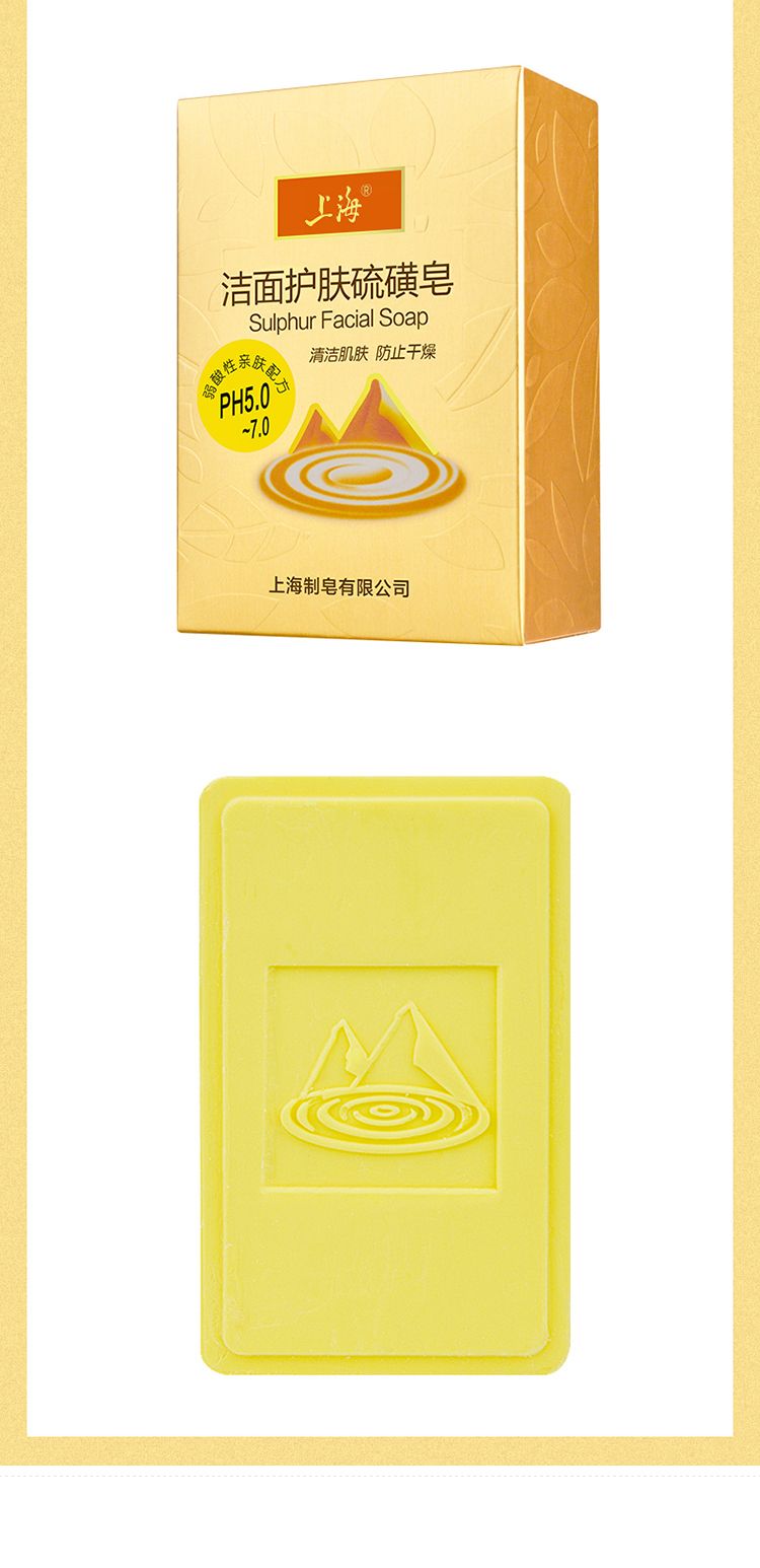 商品名称:上海洁面护肤硫磺皂除螨皂控油抑菌驱螨净痘洗脸洗发沐浴皂120g *1(单位:块) 黄色