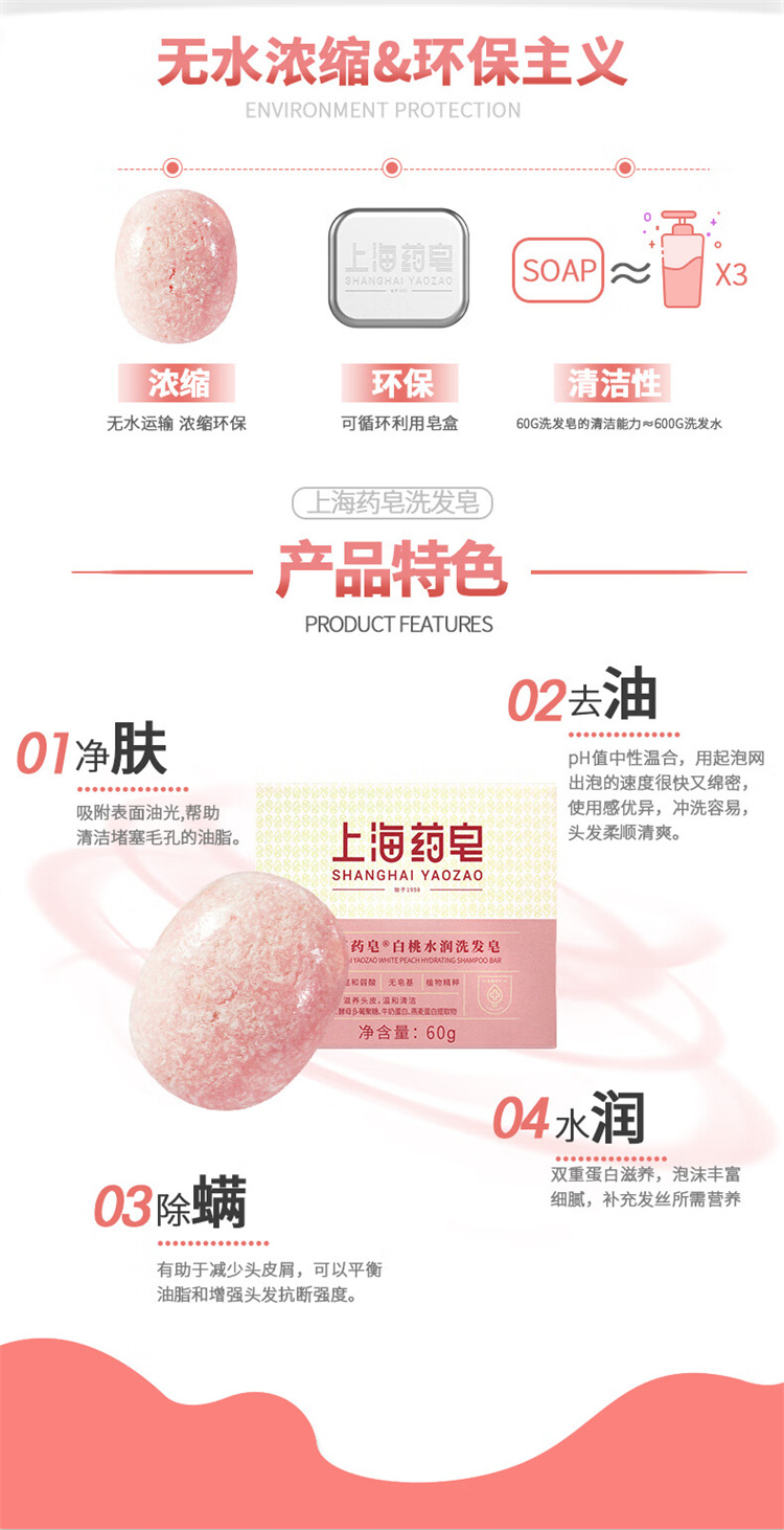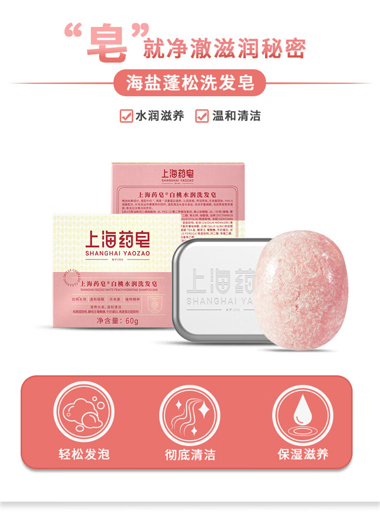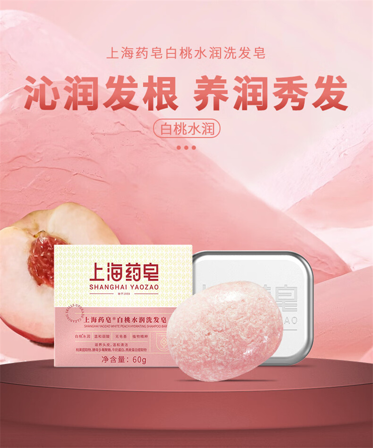 商品名称:上海药皂白桃水润洗发皂60g*1(单位:块) 粉色
