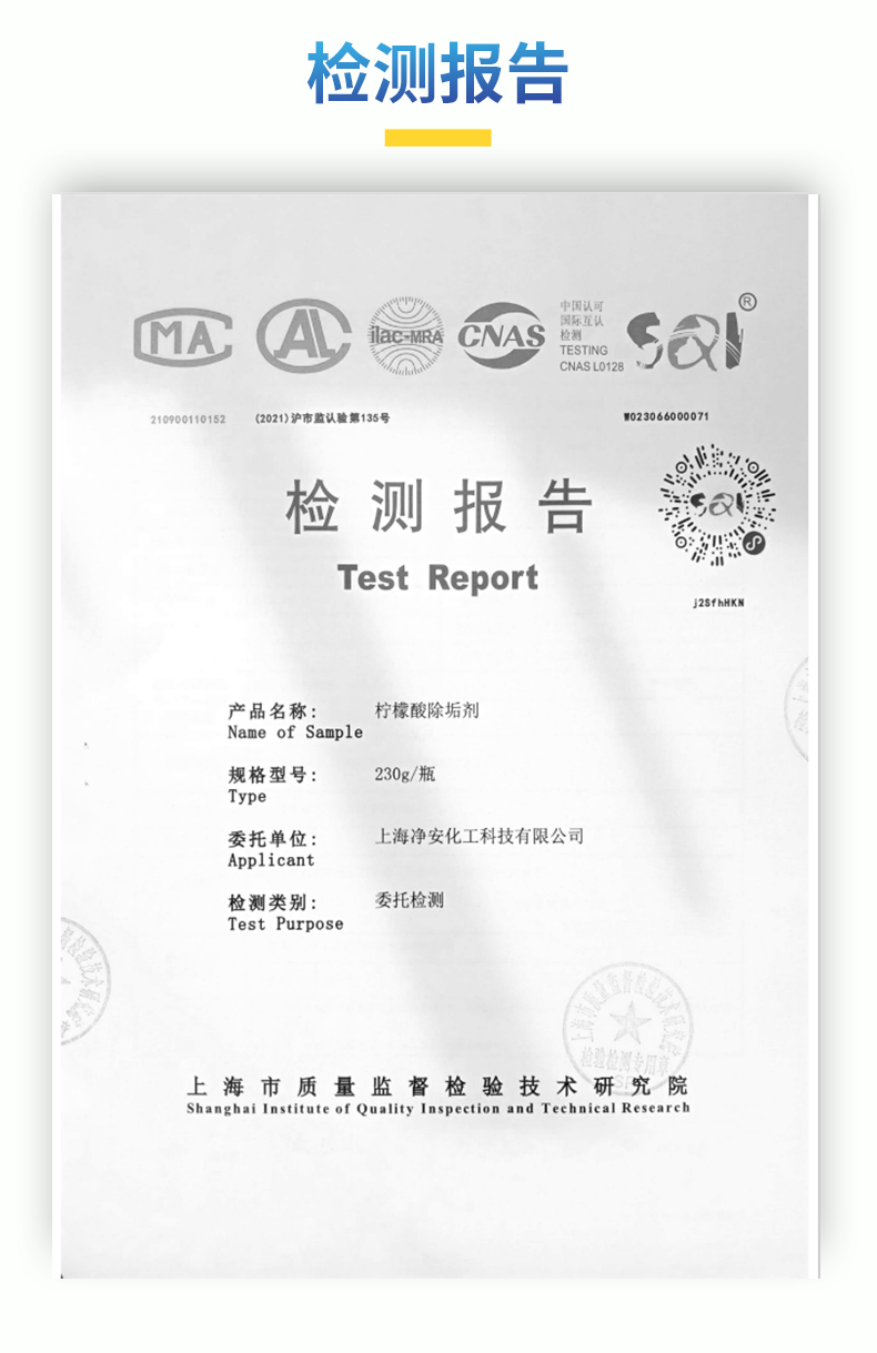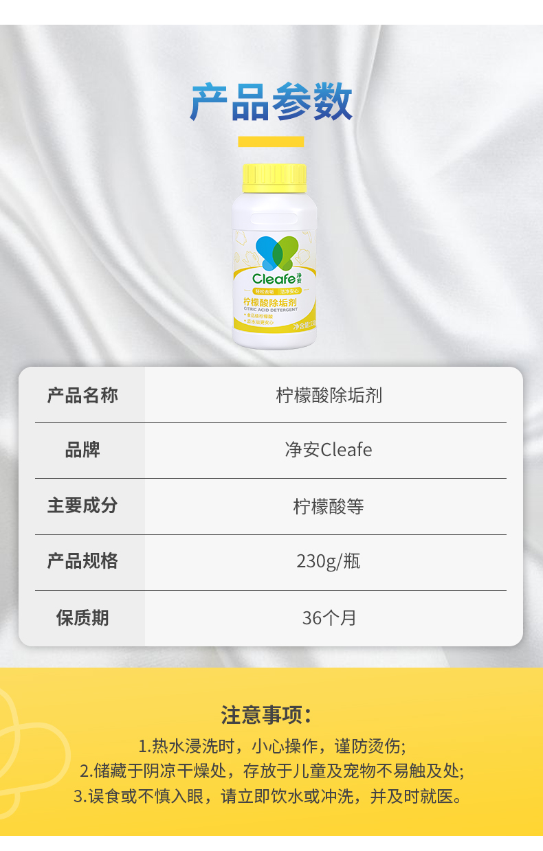 商品名称:净安柠檬酸除垢剂230g(单位:瓶)