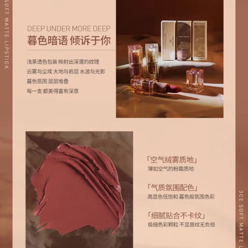 商品名称:3CE三熹玉 轻雾哑光唇膏 茶棕色 3.5g 自然色