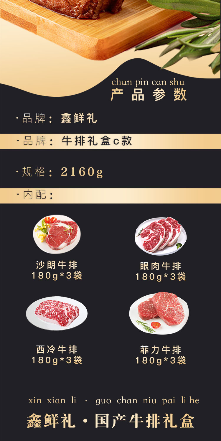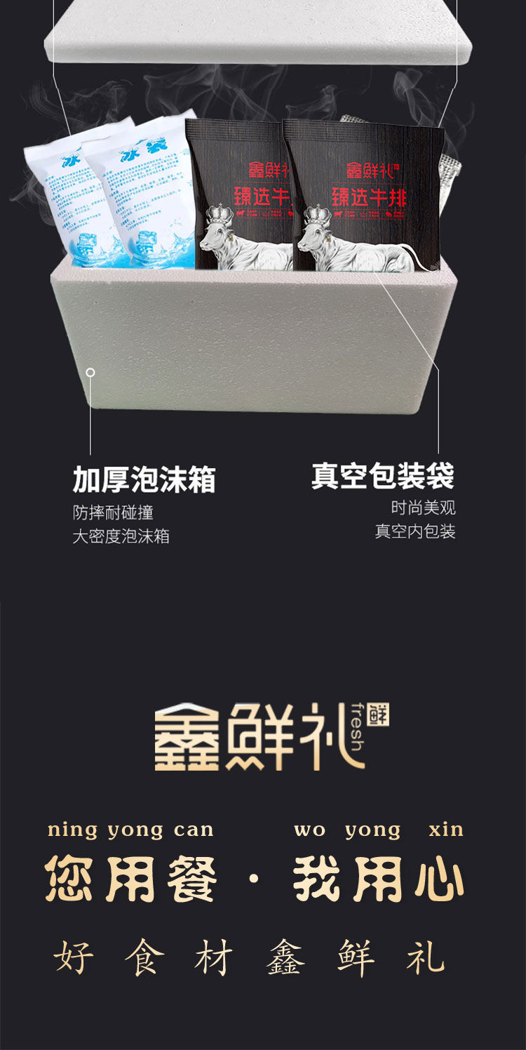 商品名称:鑫鲜礼牛排礼盒-C型 褐色