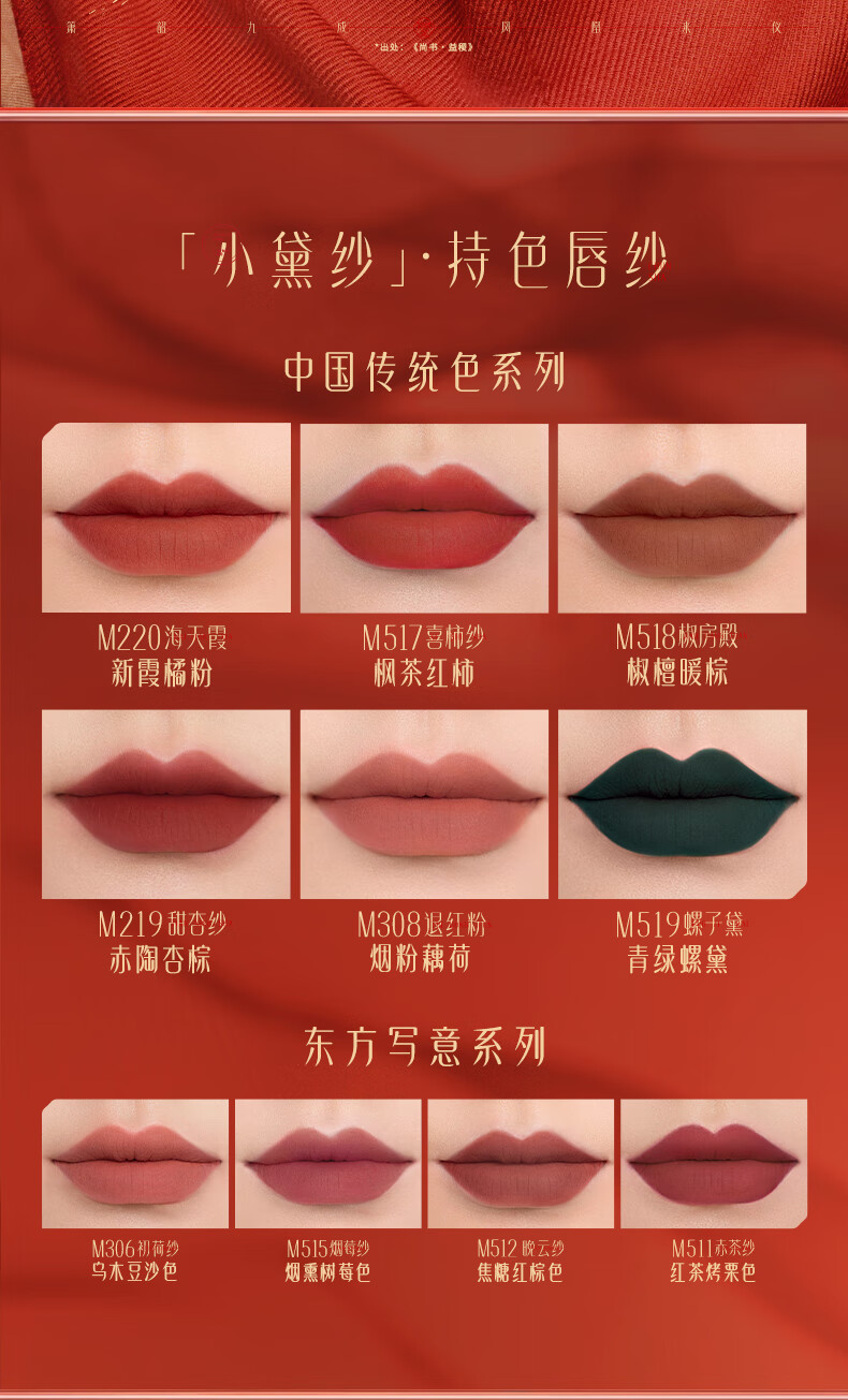 商品名称:花西子花染云纱持色唇釉-丝柔版 4g(单位:支) S142红豆纱