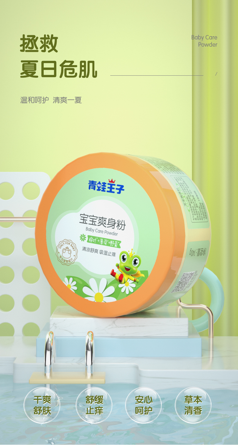 商品名称:青蛙王子宝宝爽身粉140g 橙色