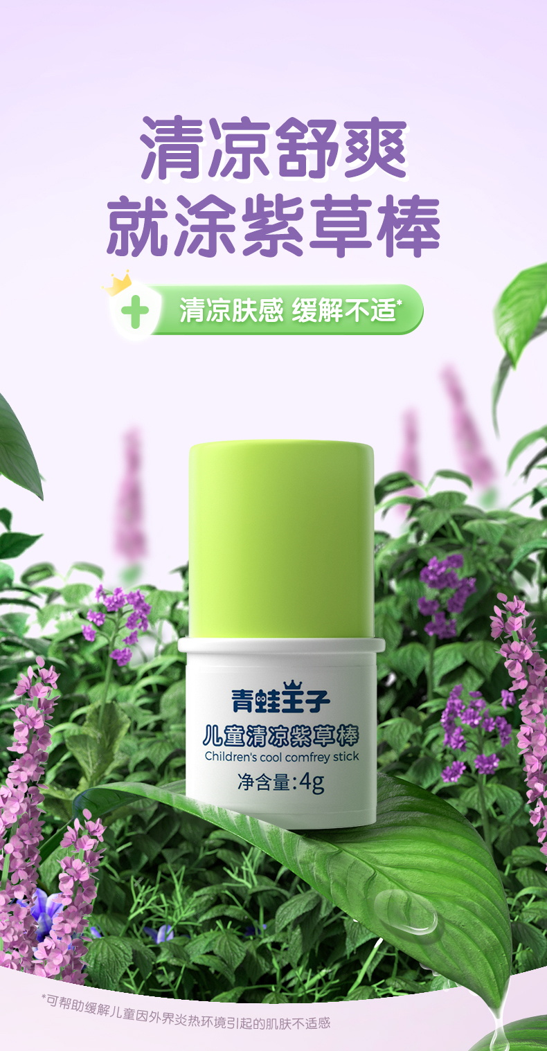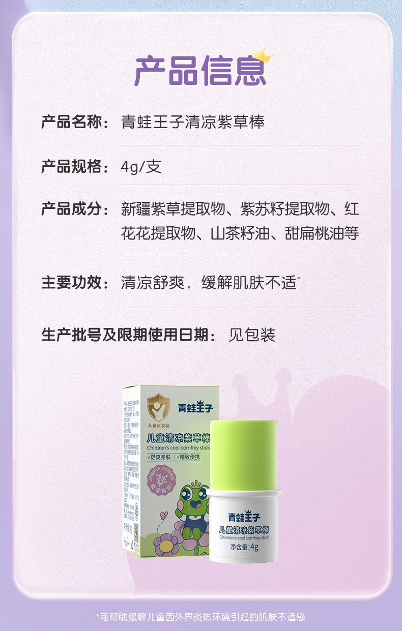 商品名称:青蛙王子儿童清凉紫草棒4g(支) 绿色