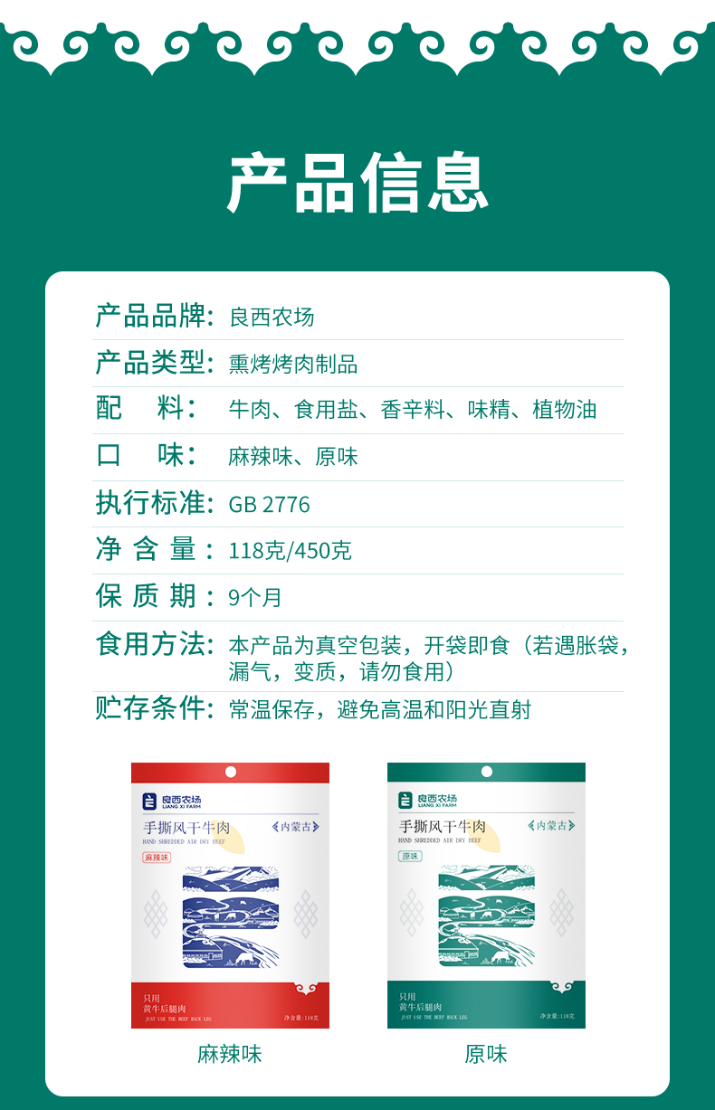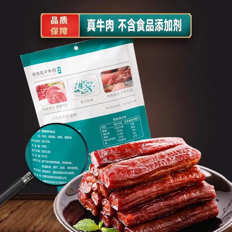 商品名称:良西农场手撕风干牛肉原味118g 水蓝色 118g