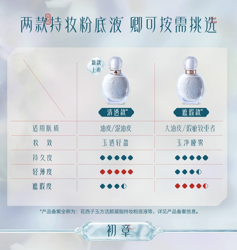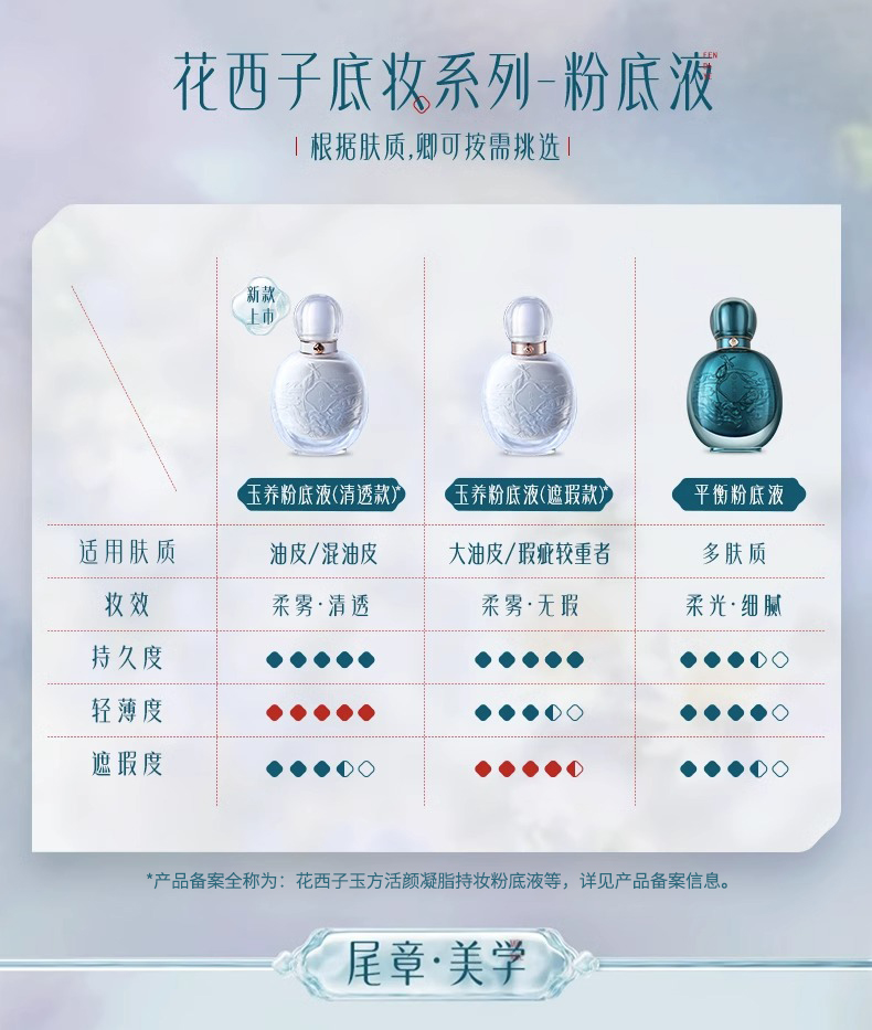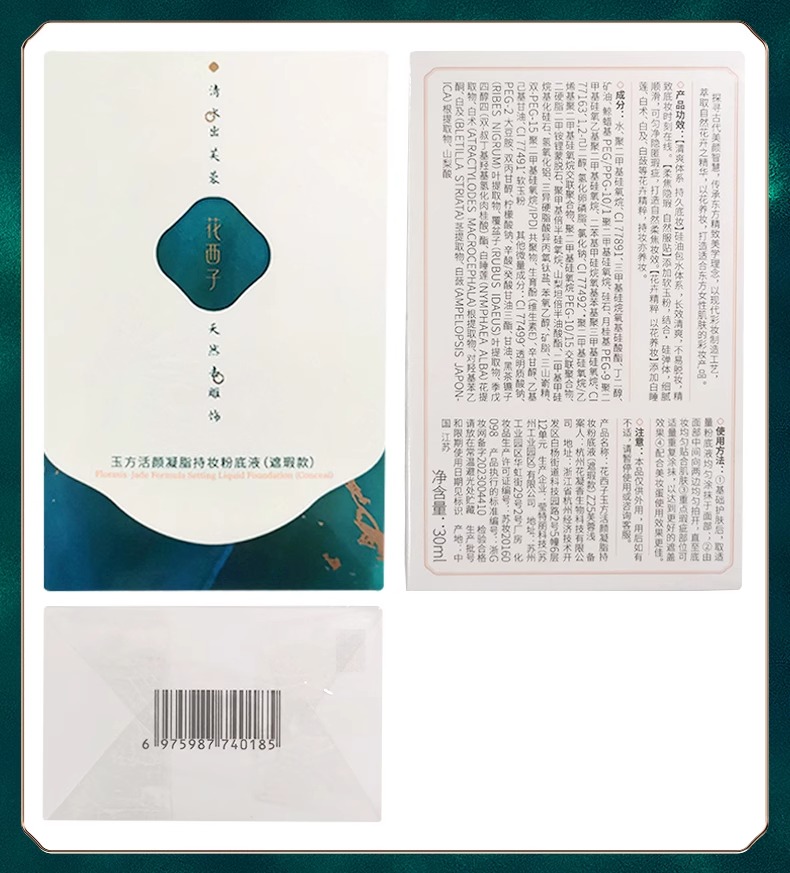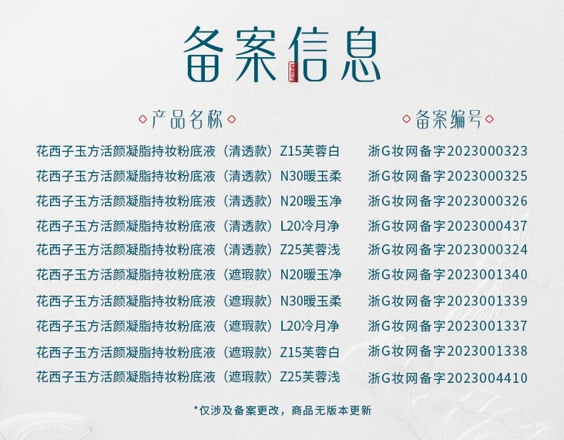 商品名称:花西子玉方活颜凝脂持妆粉底液 清透款2.0 30ml(单位:瓶) L20冷月净