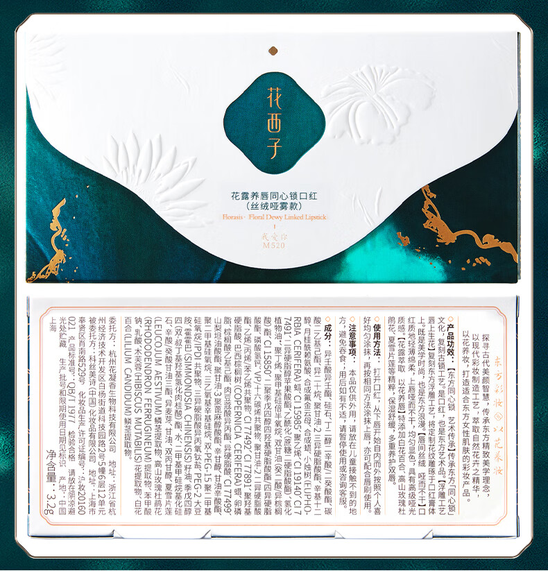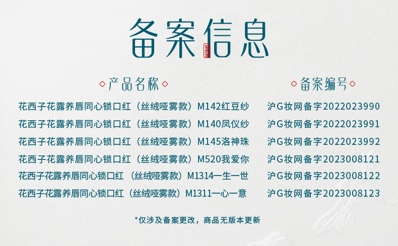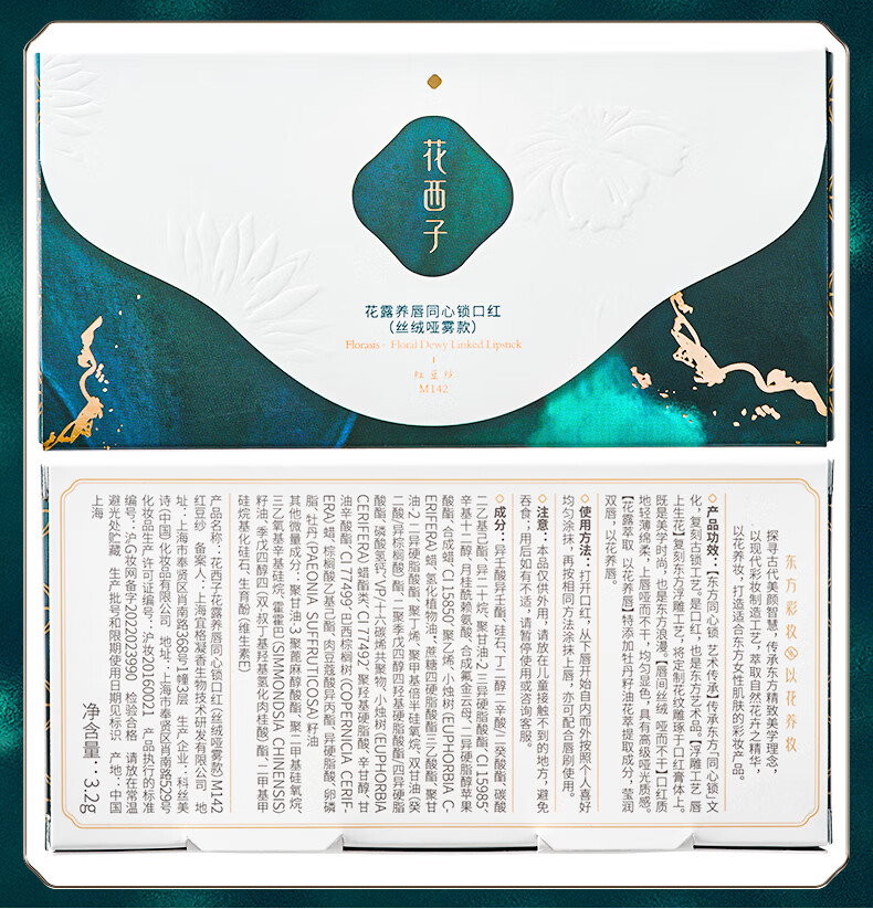 商品名称:花西子花露养唇同心锁口红(丝绒哑雾款)3.2g(单位:支) M140凤仪纱