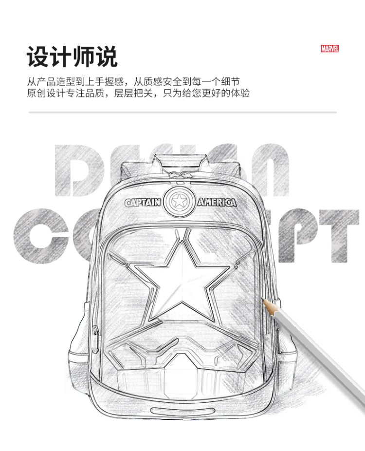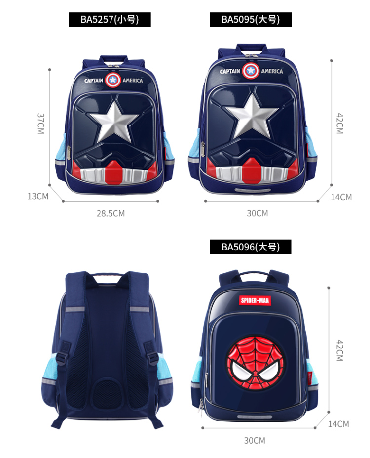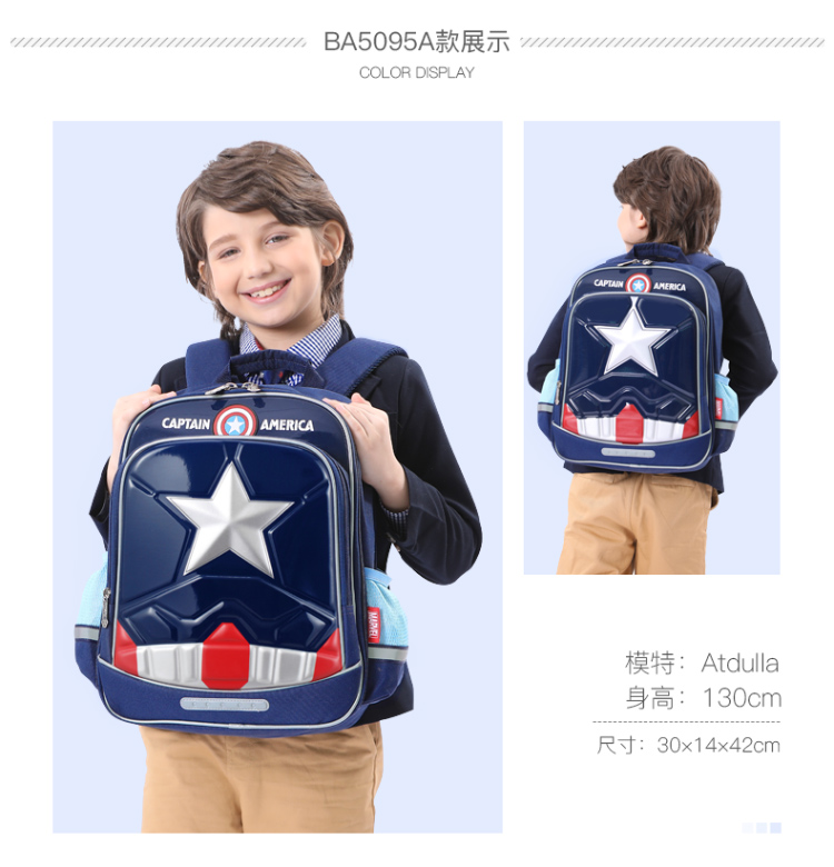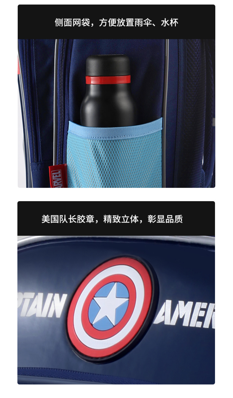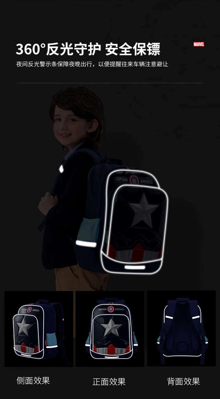 商品名称:迪士尼(Disney)书包小学生3-6年级 大容量儿童双肩背包男孩 美国队长系列 宝蓝BA5095A 宝蓝色